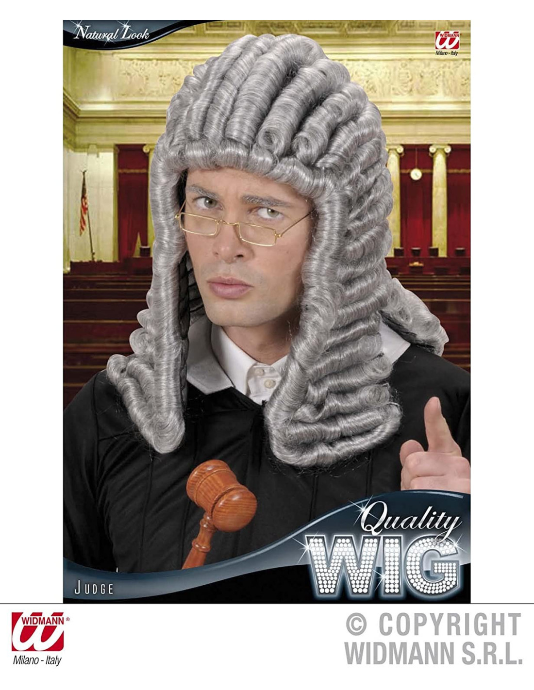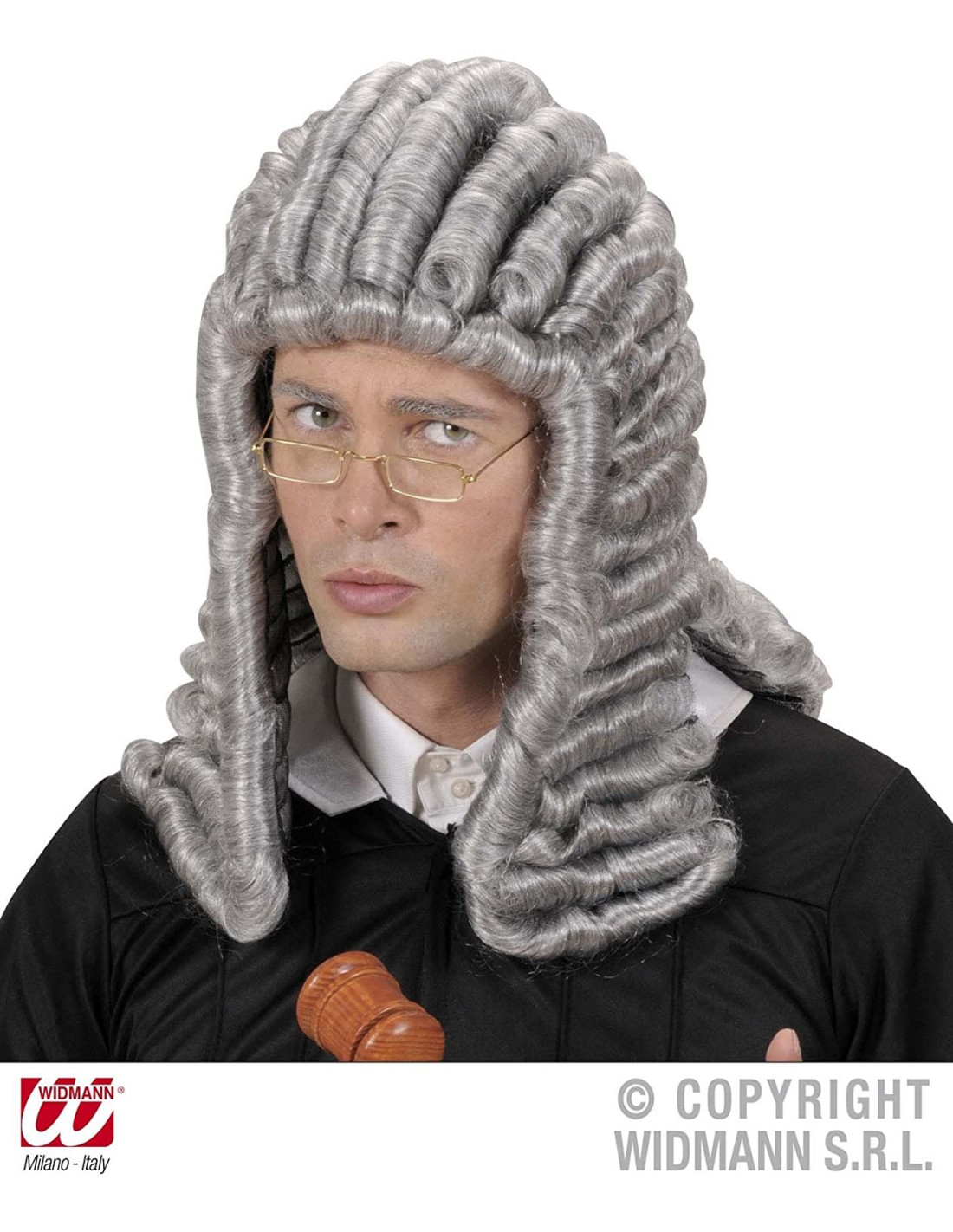 Parrucca modello giudice di colore grigio con retina elasticizzata interna che rende utilizzabile l'articolo stesso a piu' circonferenze della testa. Parrucca realistica piena di boccoli come lo erano quelle dell'epoca. La lunghezza arriva oltre la spalla. Perfetta per ogni tuo travestimento del carnevale settecentesco . -Grigio -Sintetico Grigio Sintetico