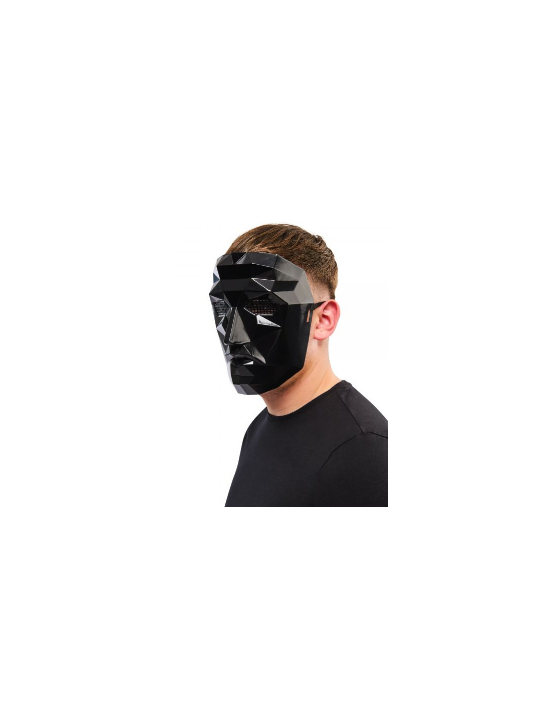 DESIGN AUTENTICO: questa maschera ufficiale è fedele a quella del capo del gioco Squid Game/Front Man, con il suo colore nero e le sue sfaccettature altamente riconoscibili. Attacchi elastici: la maschera è dotata di chiusure in velcro sul retro e per il comfort e la facilità d'uso