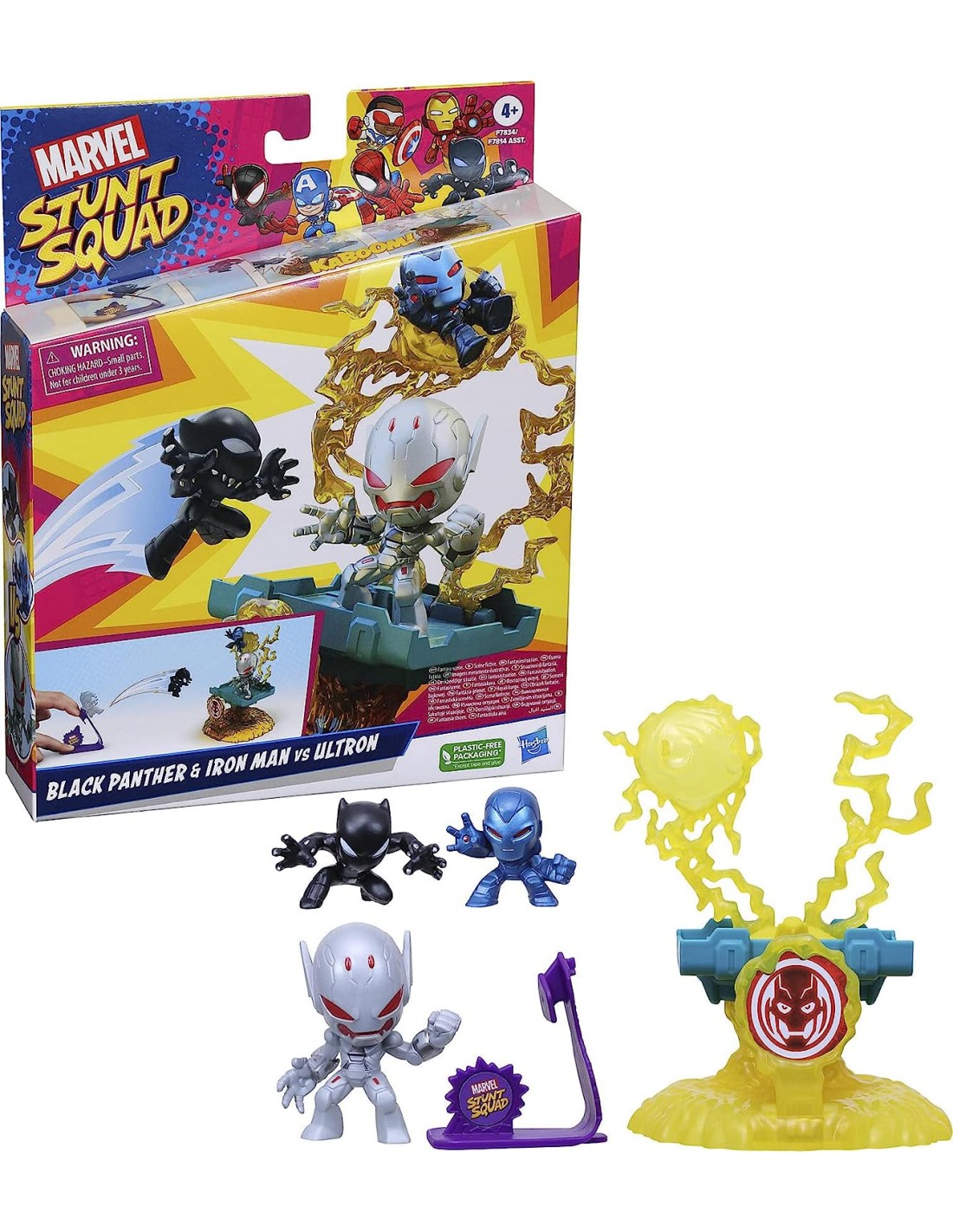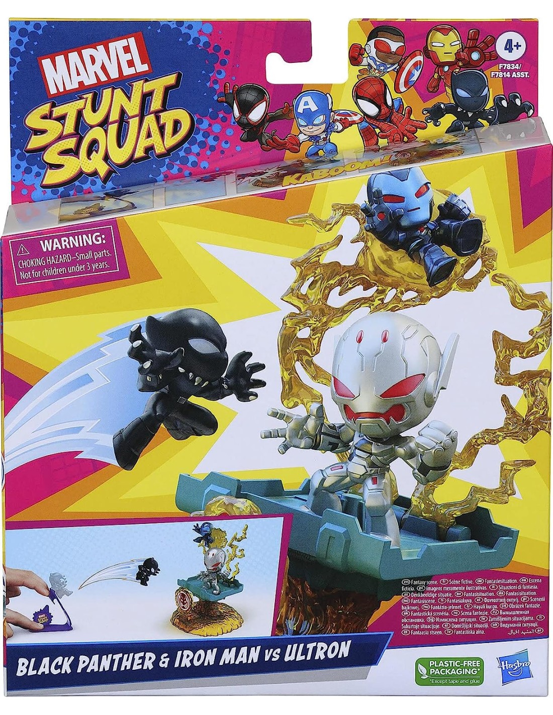 Hasbro Marvel Stunt Squad Villain Knockdown Playset Black Panther e Ironman vs Ultron F7834