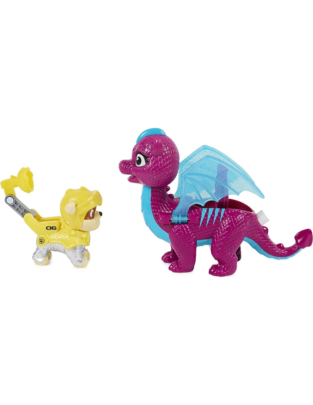 PAW PATROL FIGURE D'azione: Rubble è preparato e pronto per il tempo di avventura, con il suo drago Blizzie Rubble indossa la sua armatura dei Cavalieri di Salvataggio con dettagli in scala di drago, un casco e colletto a spillo Strumento di salvataggio di lavoro: quando i suoi amici di drago sono nei guai, basta premere il pulsante distintivo sull'armatura di Rubble per attivare il suo strumento di salvataggio. Lo strumento si apre direttamente dal suo zaino, per aiutare a salvare la giornata DRAGO CON SUPER WINGS: Noble dragon Blizzie è un must per la tua collezione Clip Rubble sulla schiena di Blizzie e premere il pulsante sulla coda di Blizzie, per le super ali da sbattere, mentre voli in azione Giocattoli emozionanti per bambini e ragazze di 3 anni: figure giocattolo e draghi di Paw Patrol Rescue Knights (ciascuno venduto separatamente) sono un ottimo regalo per bambini e fan di Paw Patrol dai 3 anni in su. Collezionali tutti Include: 1 figura della pattuglia di zampa, 1 figura del drago
