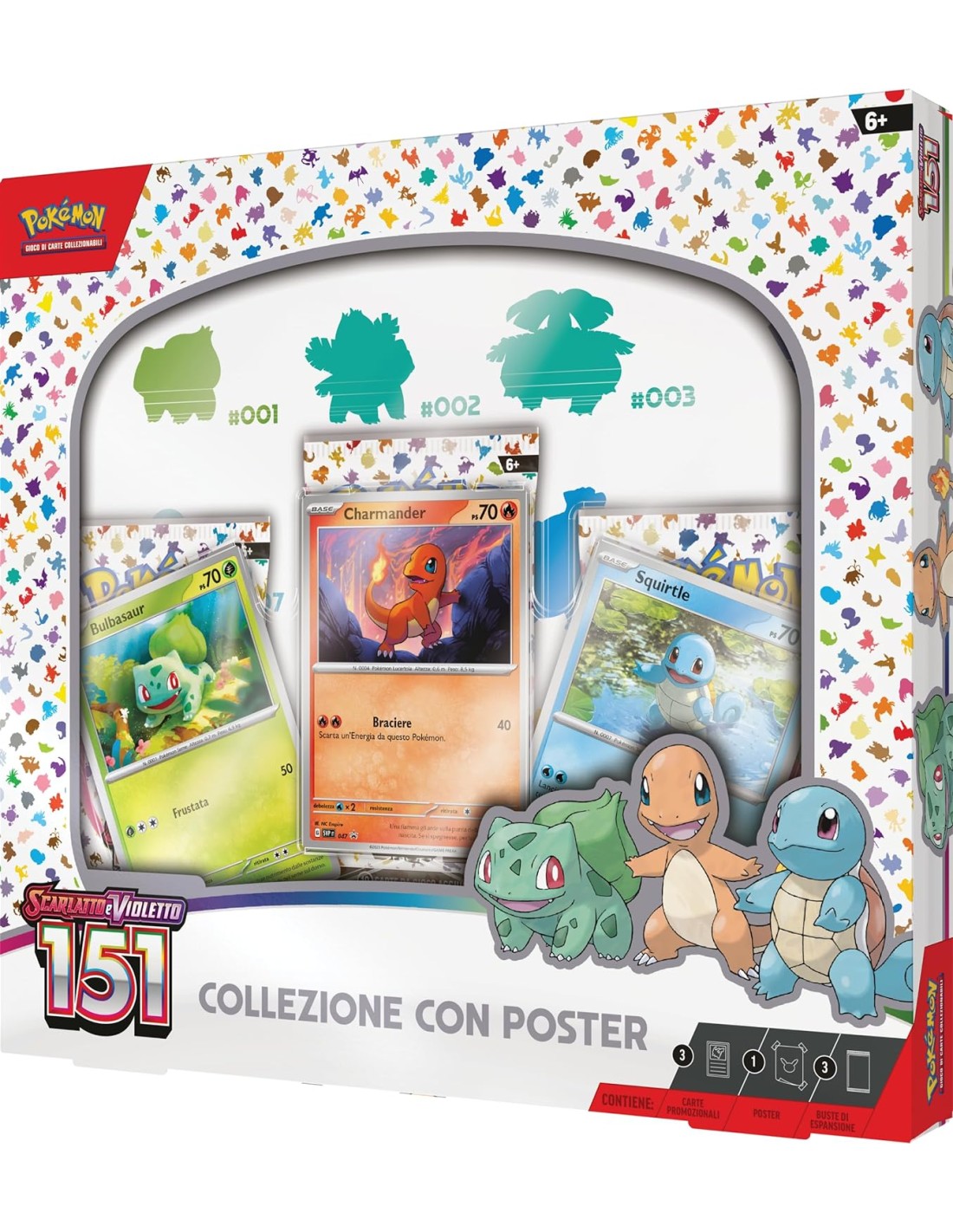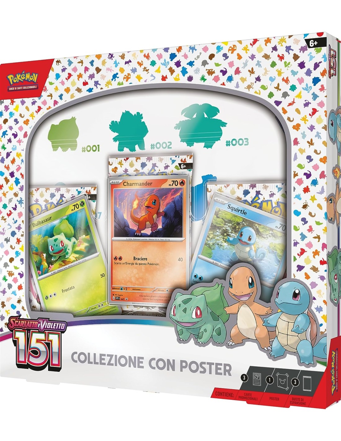 Contiene tre buste dell'espansione Scarlatto e Violetto - 151 del GCC Pokémon, tre carte promozionali olografiche, un poster dell'espansione Scarlatto e Violetto - 151 e una carta codice per il GCC Pokémon Live.