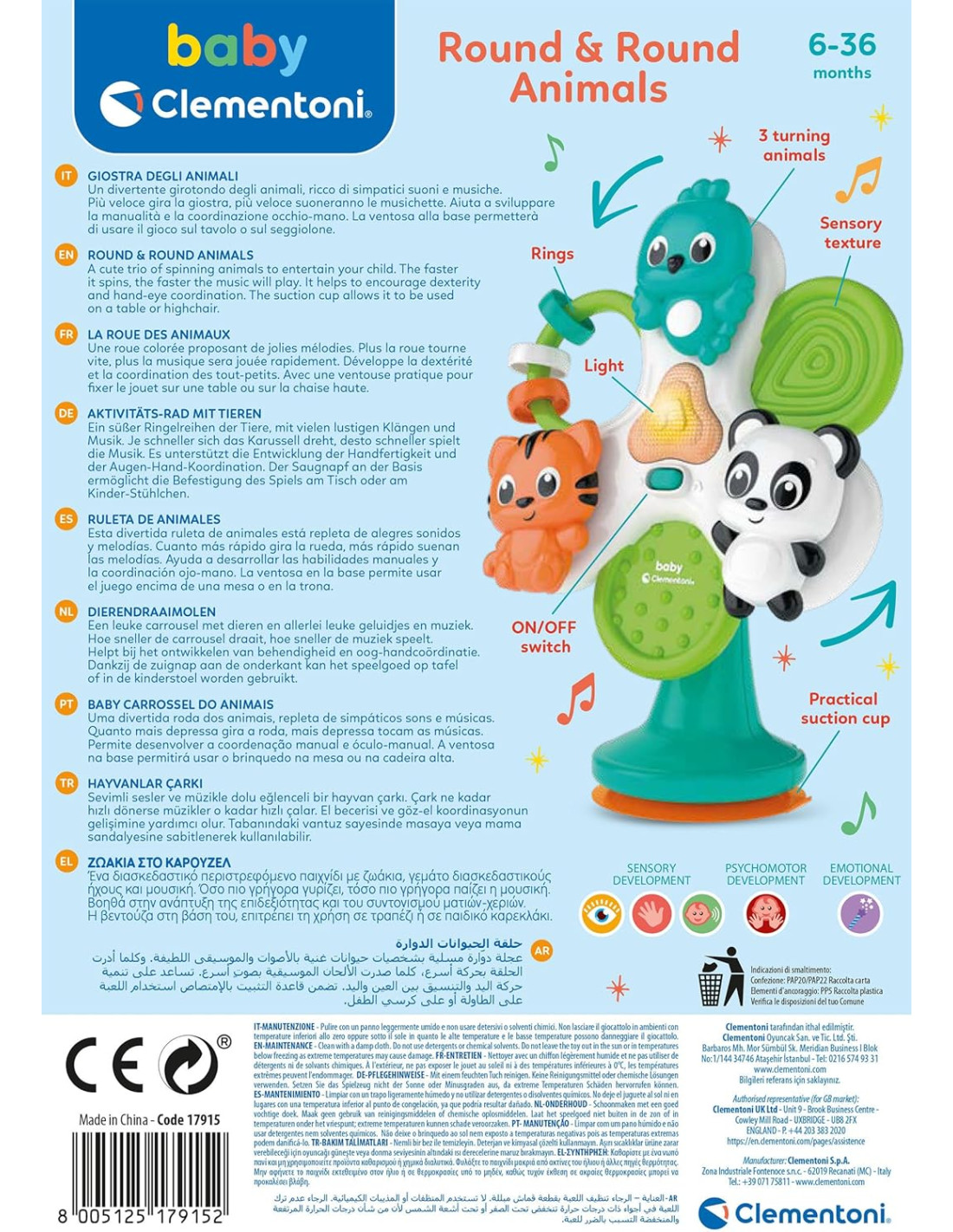 Con tante melodie e simpatici suoni che faranno divertire il piccolo stimolandone i sensi e la coordinazione oculo-manuale. Ideato, progettato e sviluppato in Italia.