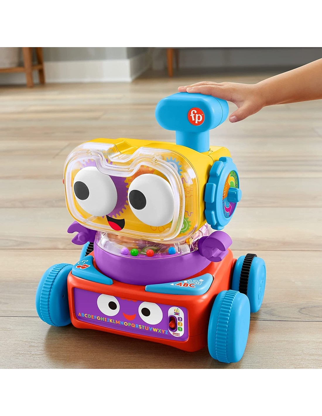 4 giocattoli in 1 per seguire la crescita del bambino durante il gioco, da neonato alla fase dei primi passi e infine all'età prescolare (da 6 mesi in su) Ciascuna parte del robot offre tantissime attività divertenti che i piccoli possono esplorare. Mettili tutti insieme per costruire un amico robot elettronico interattivo! 3 livelli di apprendimento Smart Stages con oltre 120 melodie, suoni e frasi su numeri, sul conteggio, sull'alfabeto, su forme, colori e altro ancora Premi un pulsante qualsiasi sul robot motorizzato per farlo saettare tra musica e luci, incoraggiando il bambino a gattonare per inseguirlo Tantissime attività pratiche per i bambini in grado di sedersi, come un'antenna da premere, orecchie che ruotano e si piegano e una base che dondola picchettandola con sonaglino