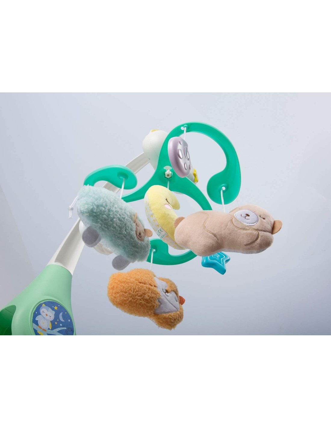 Multifunzione 2 in 1: una giostrina da culla e un centro attività da portare sempre con sè. il movimento, gli effetti luminosi soffusi, le dolci melodie ed i suoni della natura creano un'atmosfera calma e serena, per accompagnare il piccolo nella nanna. i pendenti in morbido tessuto ricordano delle nuvole e stimolano l'immaginazione. favorisce lo sviluppo della percezione visiva, uditiva e la coordinazione motoria: il bambino potrà compiere i suoi primi movimenti per raggiungere gli elementi della giostrina. con timer per 10, 15 o 20 minuti di musica e selettore musicale. Dolci melodie studiate appositamente per portare benessere al bambino attraverso la musica.