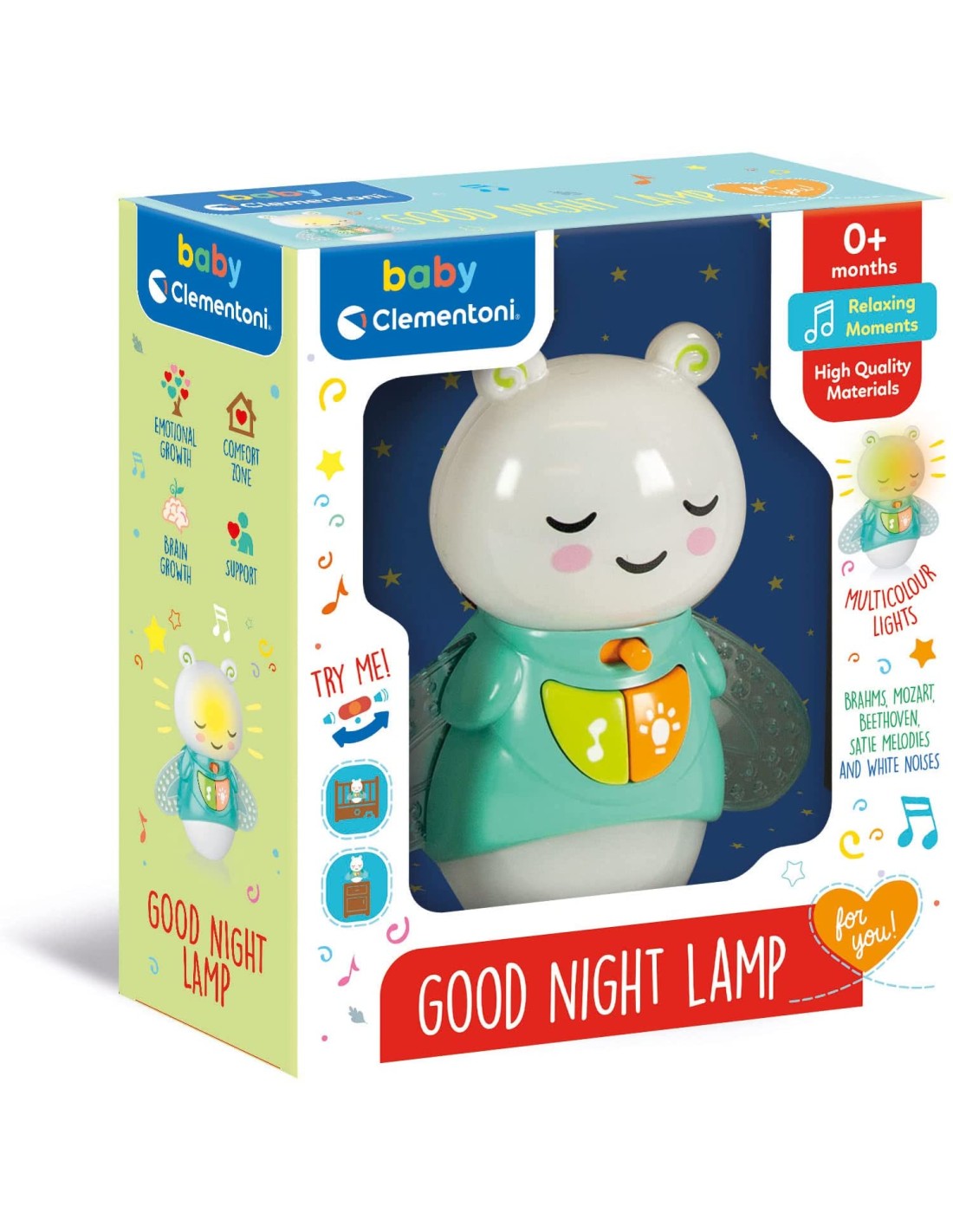 Clementoni- Good Night Lamp Notturna, Lampada per Neonati, Proiettore Luce, Luci E Suoni, Gioco Prima Infanzia Bambini 0 Mesi+