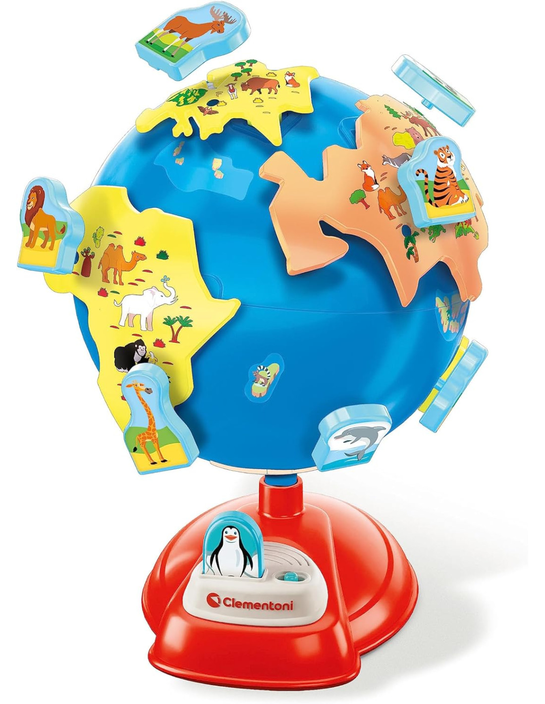 GLOBO INTERATTIVO CLEMENTONI: Un grande mappamondo elettronico e parlante in plastica riciclata, con continenti e animali da incastrare per imparare i primi concetti di geografia e tante curiosità sul nostro pianeta