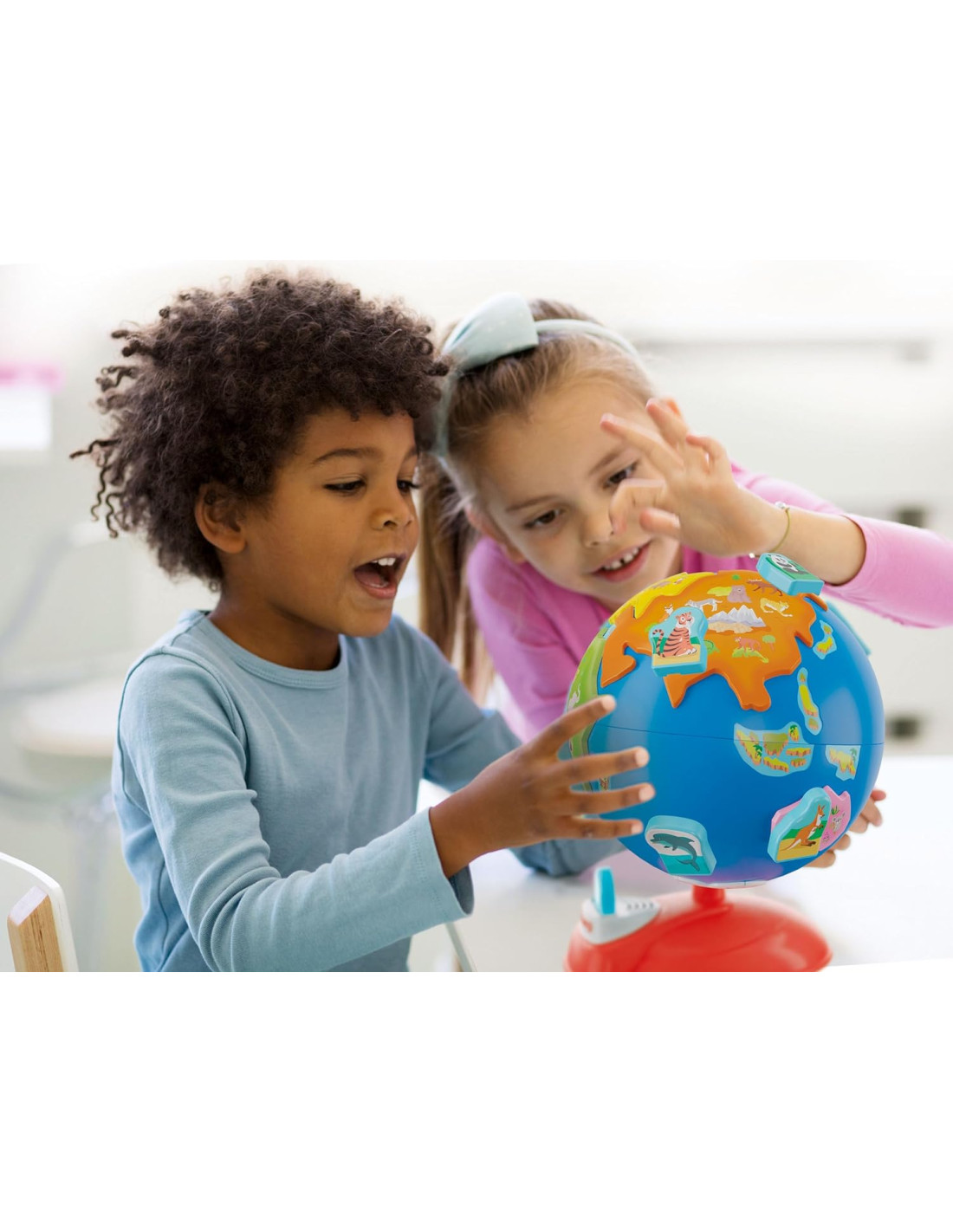 EDUCATIVO ELETTRONICO: Inserendo gli animali sagomati nel modulo elettronico alla base del globo il bambino potrà scoprire tante informazioni e curiosità su ciascun animale e sul loro habitat grazie alla voce narrante