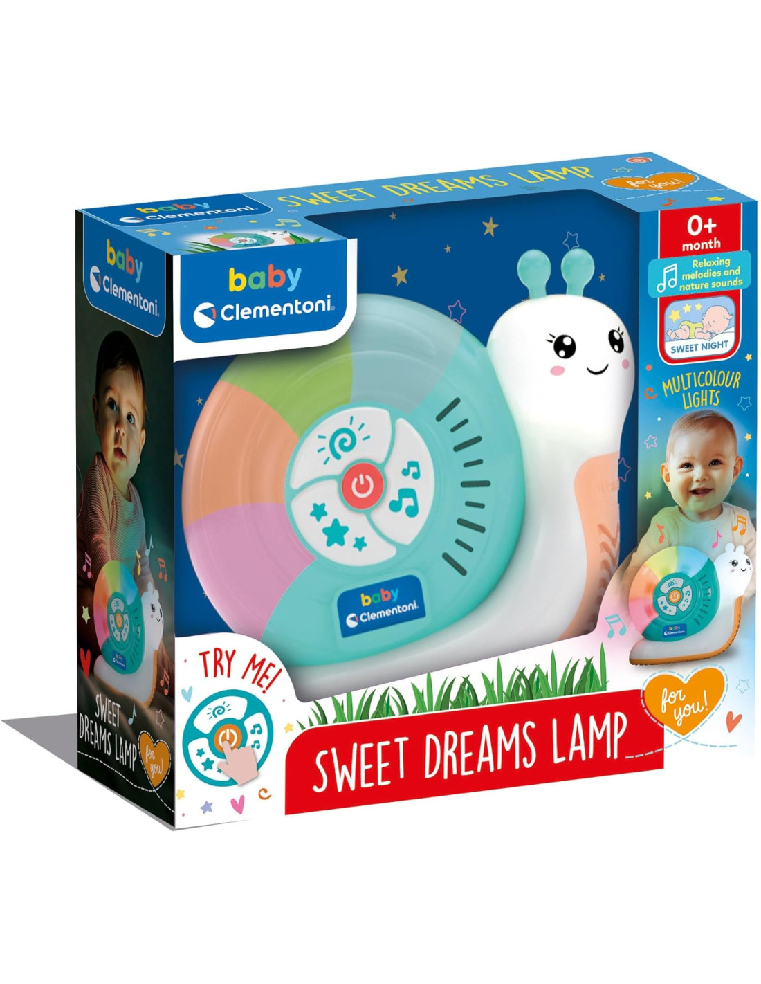 SWEET DREAMS LAMP: una dolce chiocciola che fa da lampada notturna per neonati e crea un ambiente rilassante intorno al bambino, con melodie calmanti per favorire il sonno sereno; ideale per accompagnare i momenti pre-nanna e durante la notte