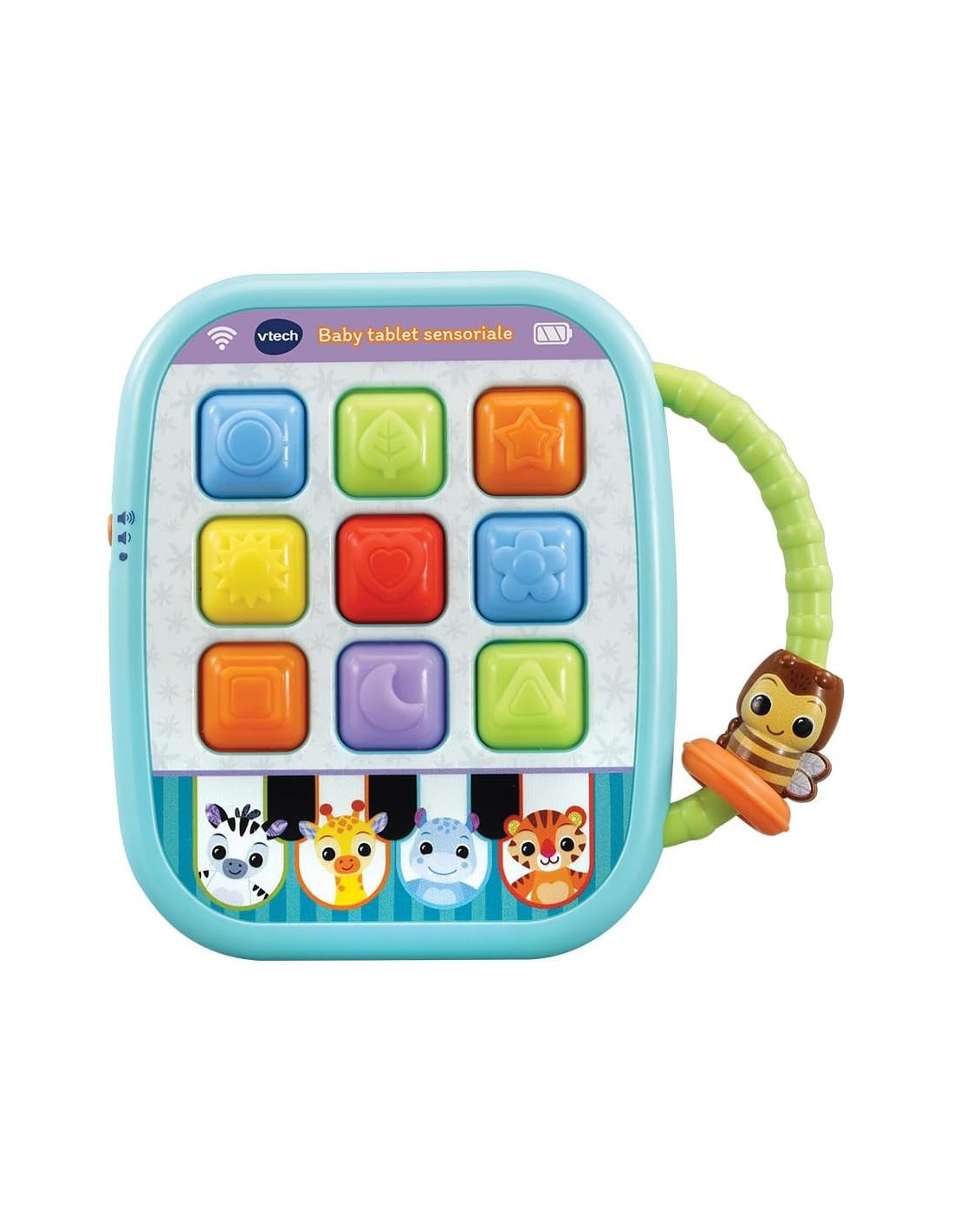 VTech Baby Tablet Sensoriale, Tablet Interattivo con più di 35 Canzoni, Frasi, Suoni, 9 Pulsanti Morbidi per Imparare Colori e Forme, Manico per Trasporto, Lingua Italiana, Batterie Incluse, 6-36 Mesi