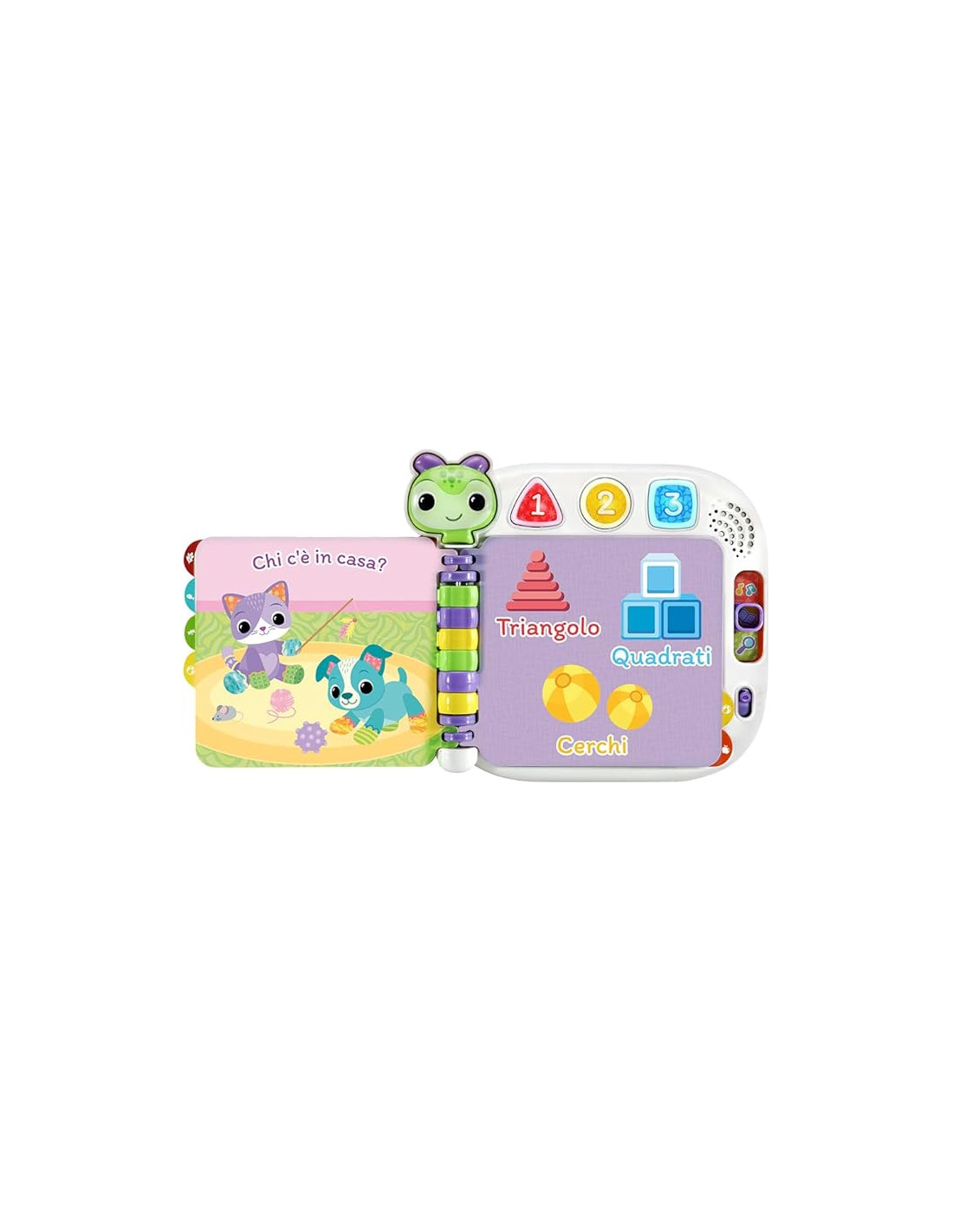 PULSANTI INTERATTIVI: include un pulsante Bruco per testare la comprensione e 3 pulsanti luminosi per imparare animali, numeri, colori e oggetti