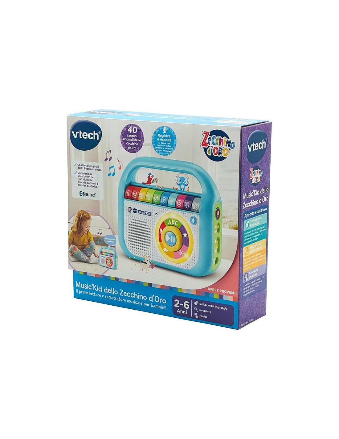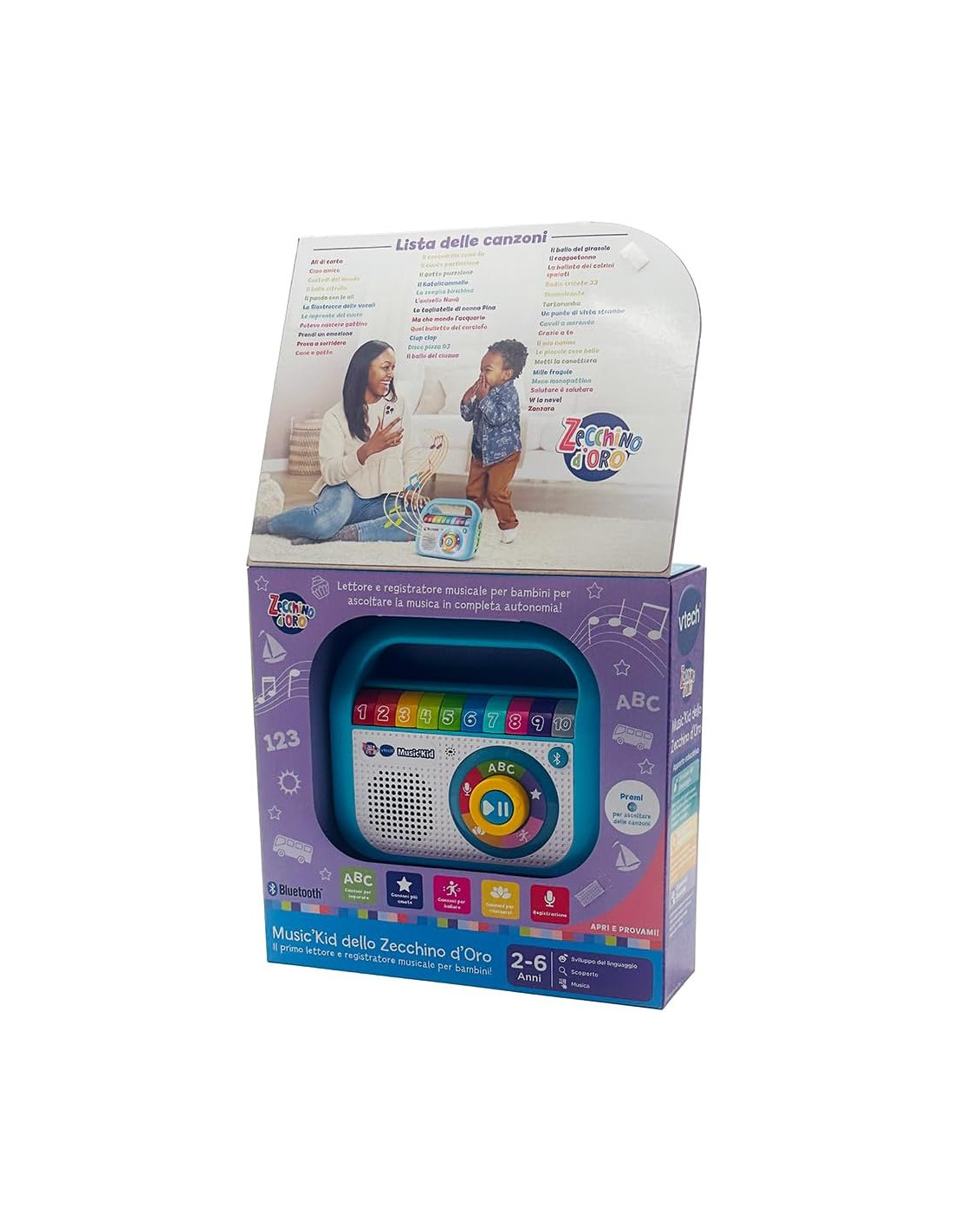 VTech Music'Kid dello Zecchino d'Oro, Lettore MP3 Bambini con 40 Brani Originali dello Zecchino D'Oro, Modalità Registrazione, Walkman Bambini Bluetooth, Lingua Italiana, Batterie Incluse, 2-6 Anni