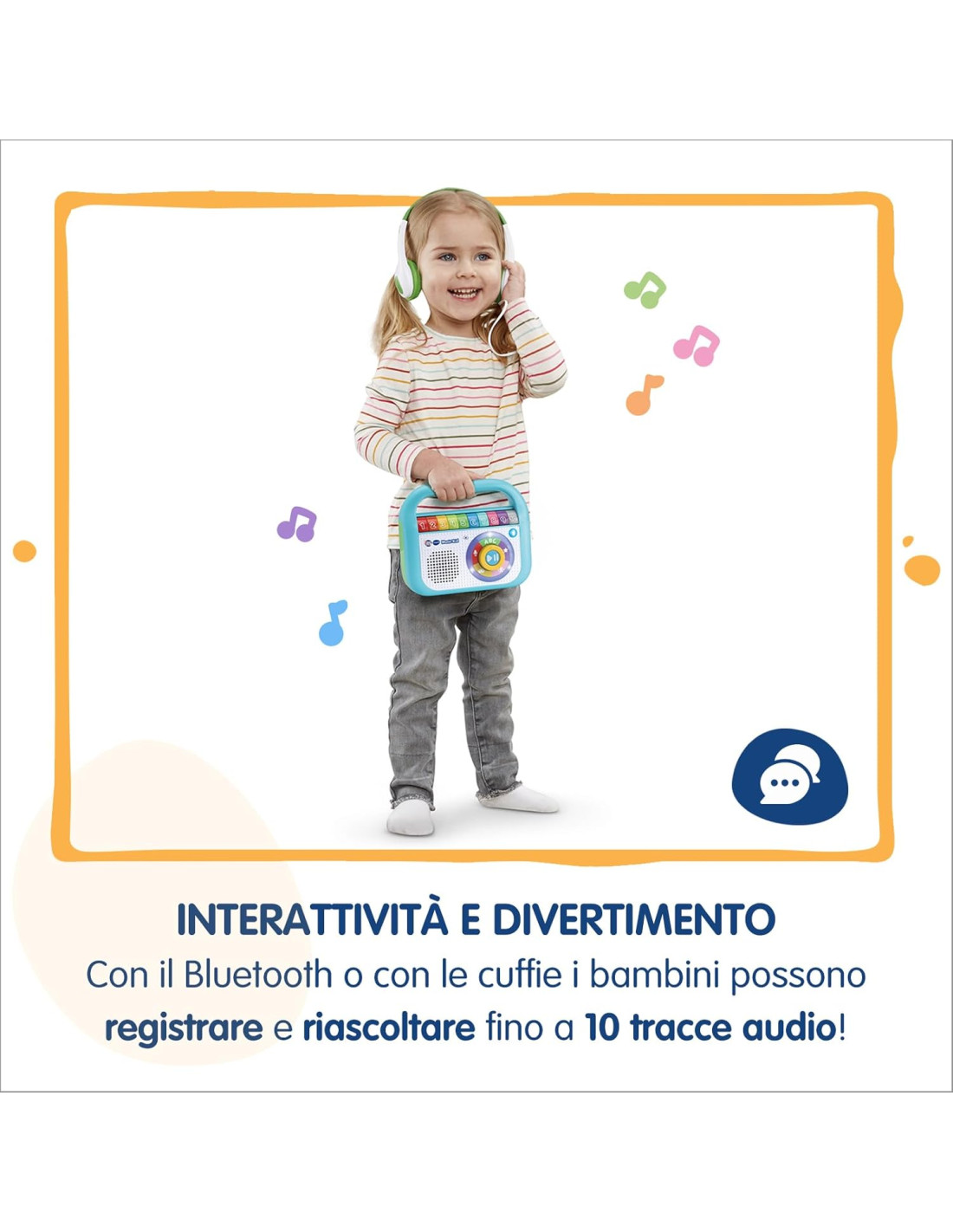 INTERATTIVITÀ E DIVERTIMENTO: i bambini possono registrare e riascoltare fino a 10 tracce audio grazie ai tasti colorati, rendendo il gioco ancora più coinvolgente
