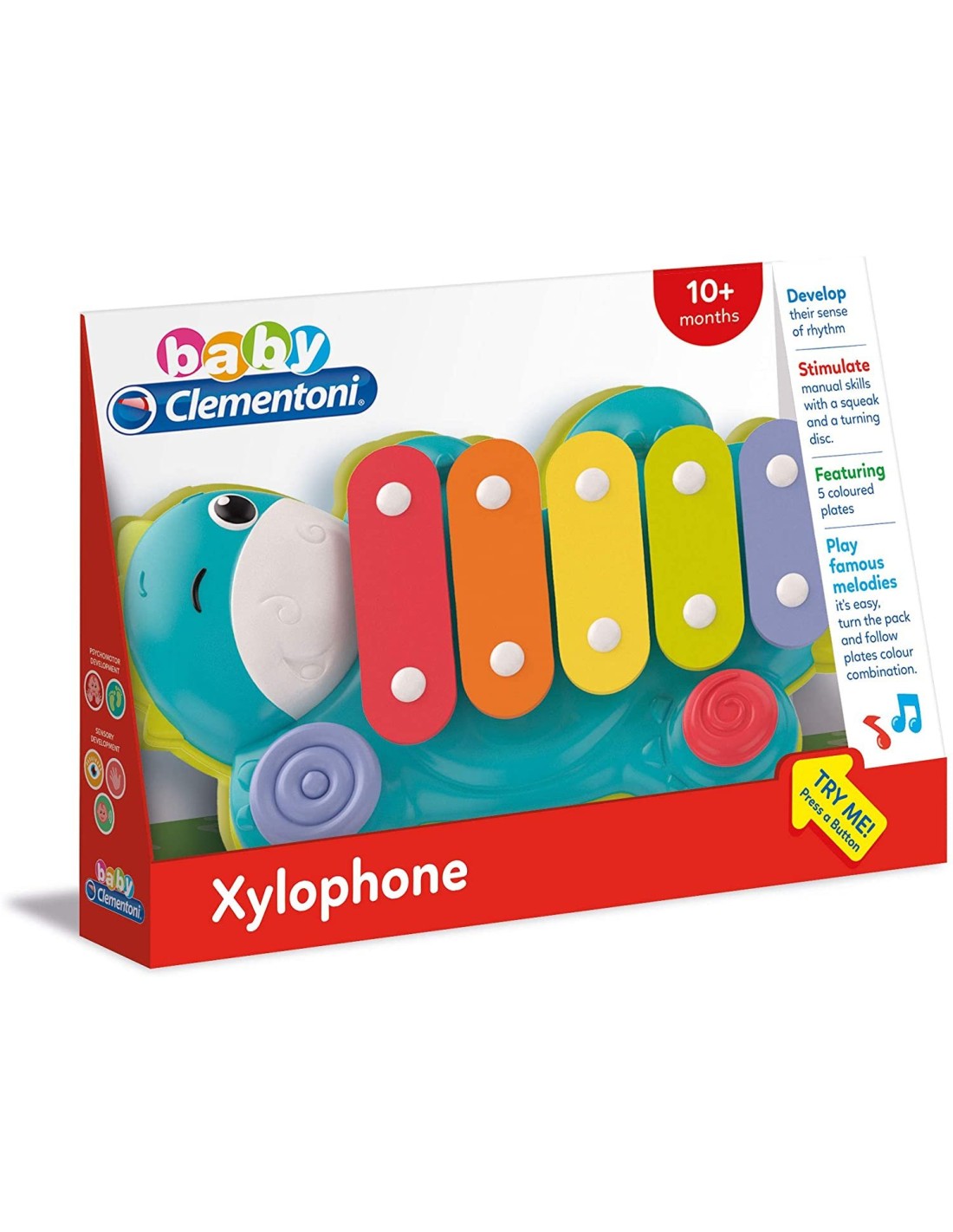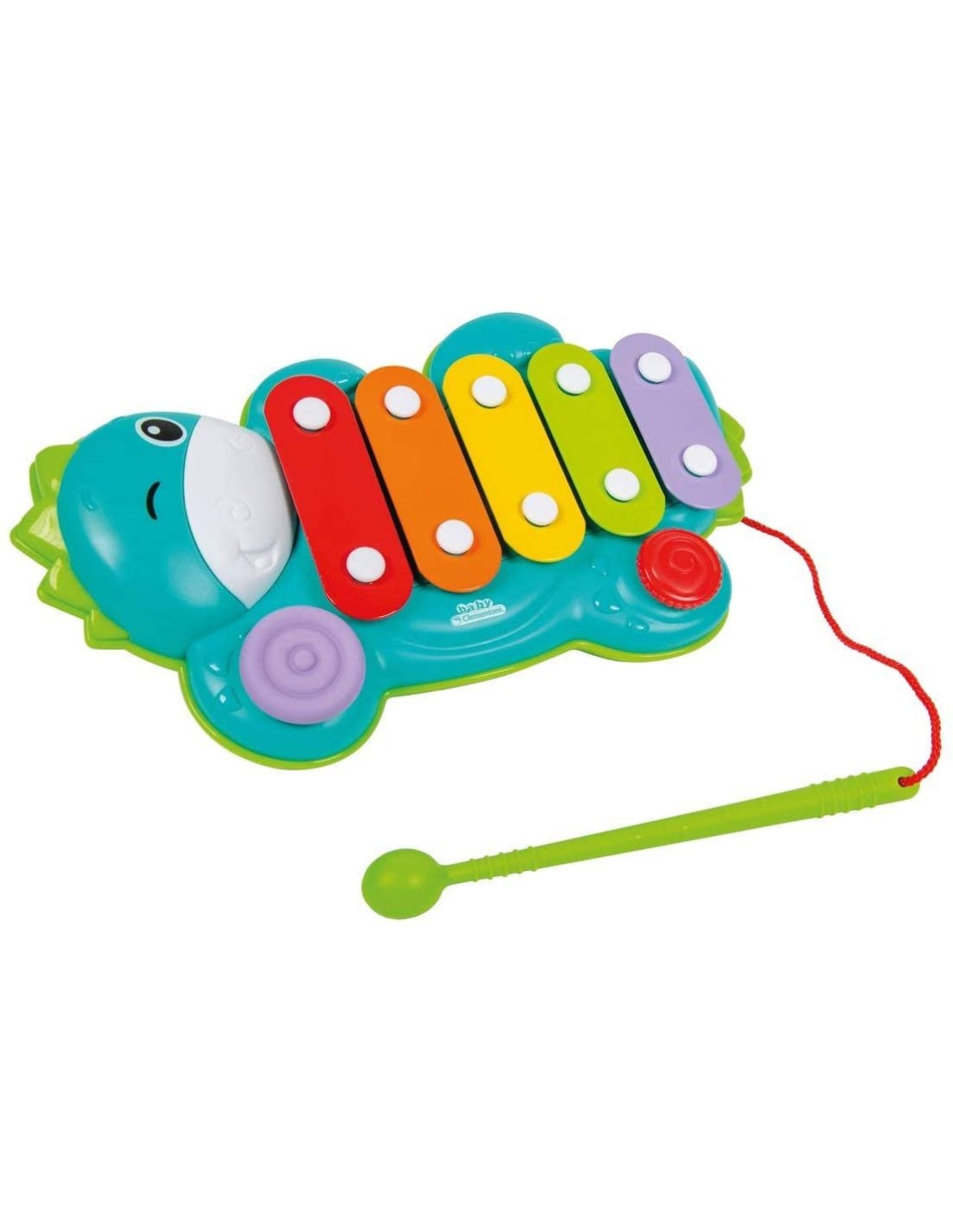 Grazie ad una piccola bacchetta legata allo strumento attraverso un laccetto, il bambino potrà suonare i 5 tasti colorati dello xilofono, stimolando il senso del ritmo e la fantasia!