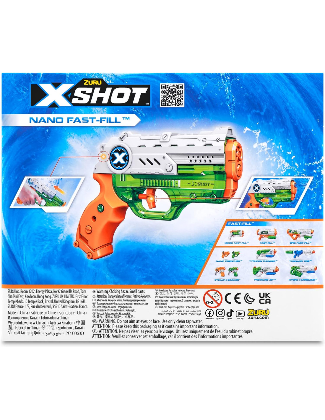 XSHOT. PISTOLA AD ACQUA Il riempimento rapido X-Shot Nano Fast-Fill ti consente di riempire la pistola ad acqua in un secondo e riprendere il combattimento ben prima dei tuoi avversari.