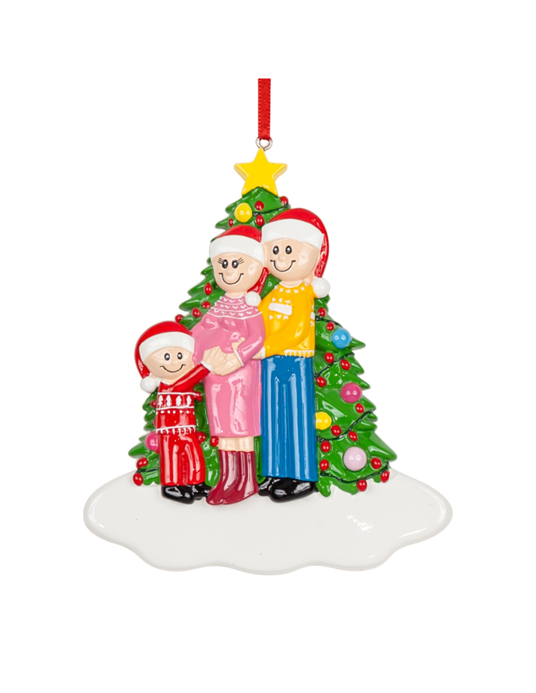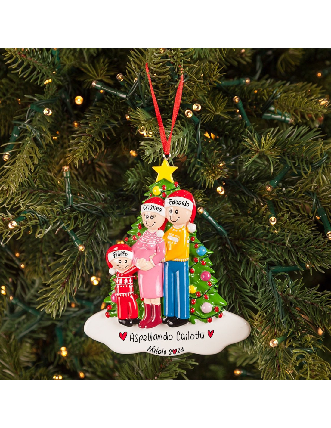 Un bebè in arrivo, un'attesa che diventa ancora più dolce a Natale! La decorazione da appendere all?albero è pronta per essere personalizzata inserendo i nomi sui cappellini dei 3 personaggi e scrivendo una breve frase, un augurio o una data sul banner bianco. Le nostre bravissime decoratrici scriveranno a mano ogni tuo desiderio, senza nessun costo aggiuntivo. Ogni decorazione sarà consegnata nella splendida Gift Box.
