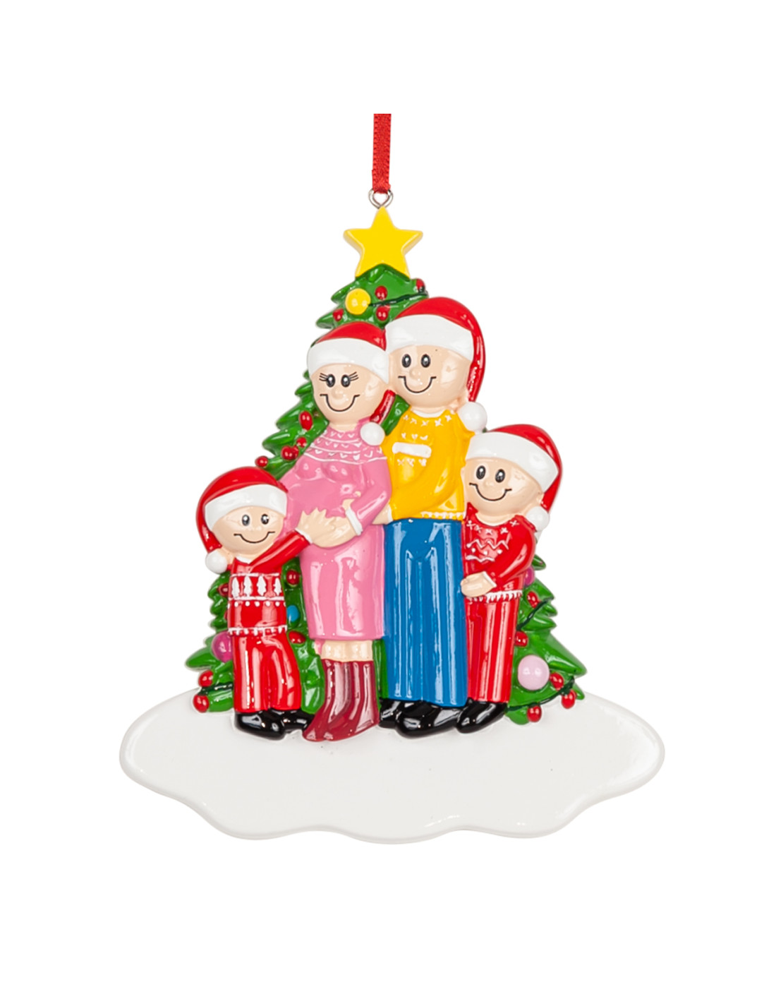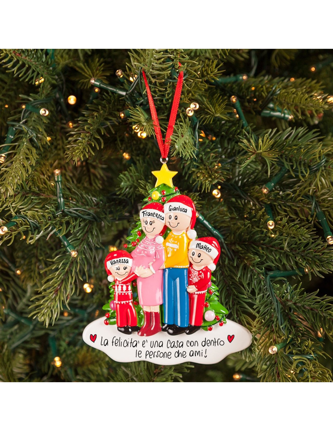 Un bebè in arrivo, un'attesa che diventa ancora più dolce a Natale! La decorazione da appendere all?albero è pronta per essere personalizzata inserendo i nomi sui cappellini dei 4 personaggi e scrivendo una breve frase, un augurio o una data sul banner bianco. Le nostre bravissime decoratrici scriveranno a mano ogni tuo desiderio, senza nessun costo aggiuntivo. Ogni decorazione sarà consegnata nella splendida Gift Box.