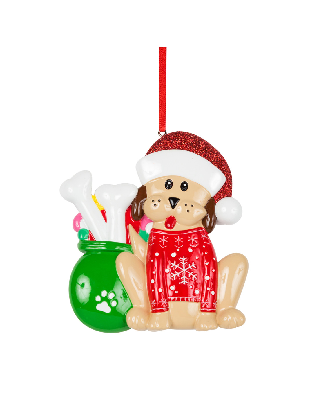 Ques'anno anche i nostri fedeli amici a quattro zampe avranno il loro meritato posto sull'albero di Natale. La particolarità della decorazione sta nella personalizzazione, infatti, puoi inserire il nome, una frase o un augurio sul banner bianco. Le nostre bravissime decoratrici scriveranno a mano ogni tuo desiderio, senza nessun costo aggiuntivo. Ogni prodotto acquistato sarà consegnato nella splendida Gift Box.