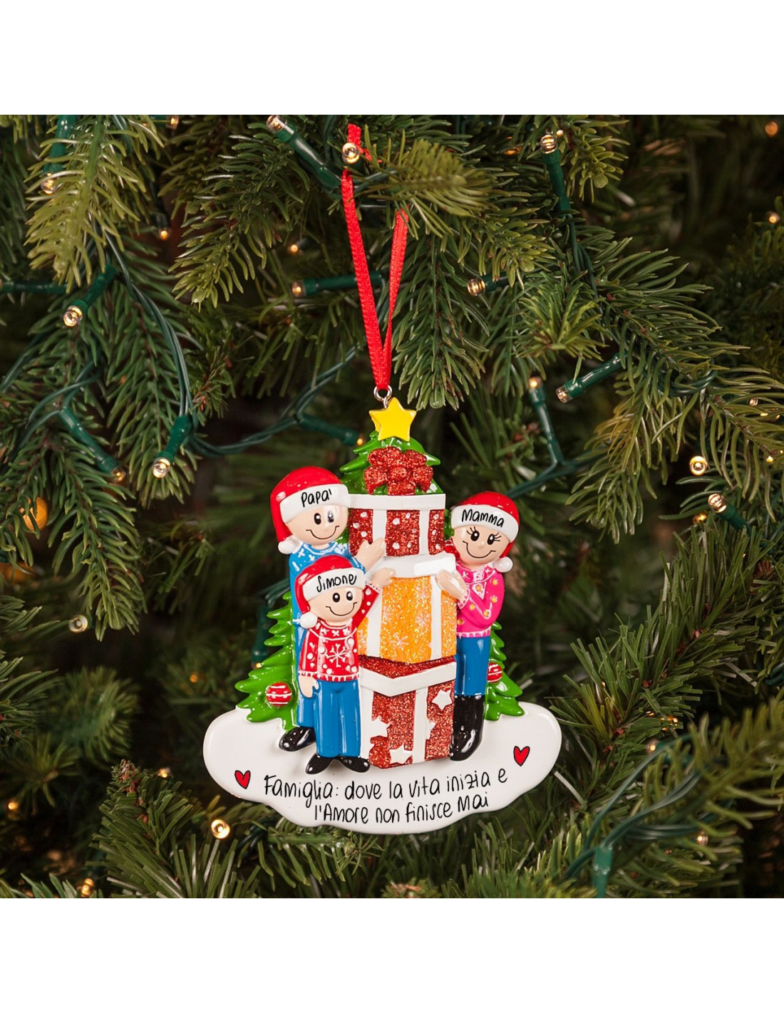 I due elementi più simbolici del Natale? I regali e gli abbracci, i primi sono una bella sorpresa mentre i secondi creano un'atmosfera d'amore e affetto. La decorazione da appendere all'albero è pronta per essere personalizzata inserendo i nomi sui cappellini dei 3 personaggi e scrivendo una frase, un augurio o una data sul banner bianco. Le nostre bravissime decoratrici provvederanno a scrivere a mano ogni tuo desiderio, senza nessun costo aggiuntivo. Ogni decorazione sarà consegnata nella splendida Gift Box.