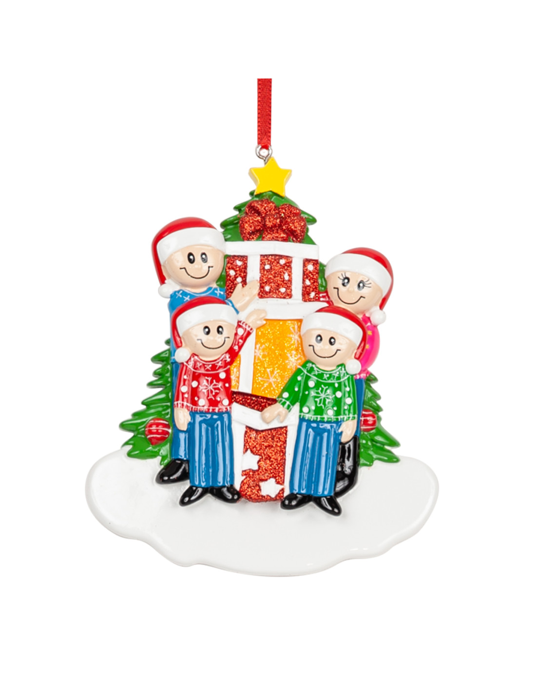 I due elementi più simbolici del Natale? I regali e gli abbracci, i primi sono una bella sorpresa mentre i secondi creano un'atmosfera d'amore e affetto. La decorazione da appendere all'albero è pronta per essere personalizzata inserendo i nomi sui cappellini dei 4 personaggi e scrivendo una frase, un augurio o una data sul banner bianco. Le nostre bravissime decoratrici provvederanno a scrivere a mano ogni tuo desiderio, senza nessun costo aggiuntivo. Ogni decorazione sarà consegnata nella splendida Gift Box.
