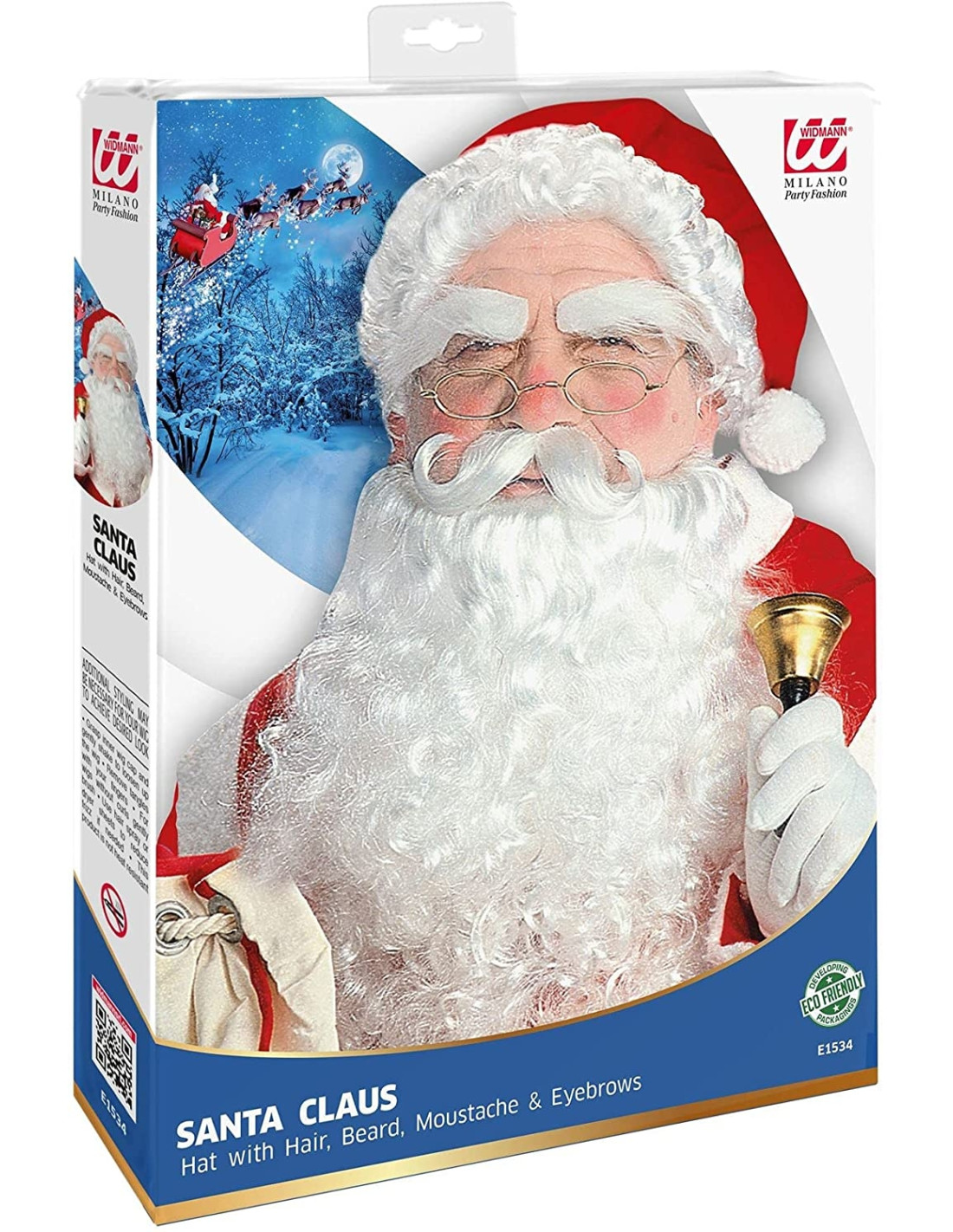 Set Lusso da Babbo Natale in Scatola ,Cappello con Capelli, Barba, Kit di Travestimento, Sopracciglia, Ideale per Travestimenti a Natale, Tutte le Feste in Maschera e a tema per divertirsi in compagnia.