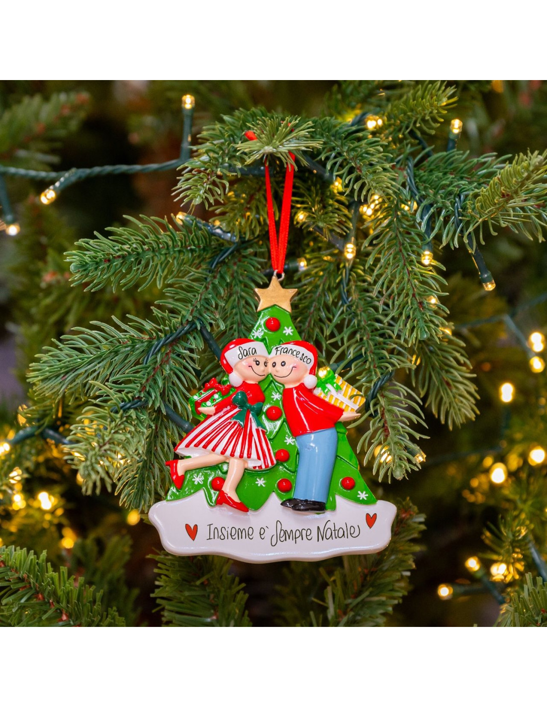 Lo scambio dei regali è uno dei momenti più belli del Natale. Doni unici, desideri che si avverano e attimi di felicità che rimangono impressi nella mente. La decorazione è pronta per essere personalizzata inserendo i nomi sui cappellini dei 2 personaggi e scrivendo una breve frase, un augurio o una data sul banner bianco. Le nostre bravissime decoratrici scriveranno a mano ogni tuo desiderio, senza nessun costo aggiuntivo. Ogni decorazione sarà consegnata nella splendida Gift Box.