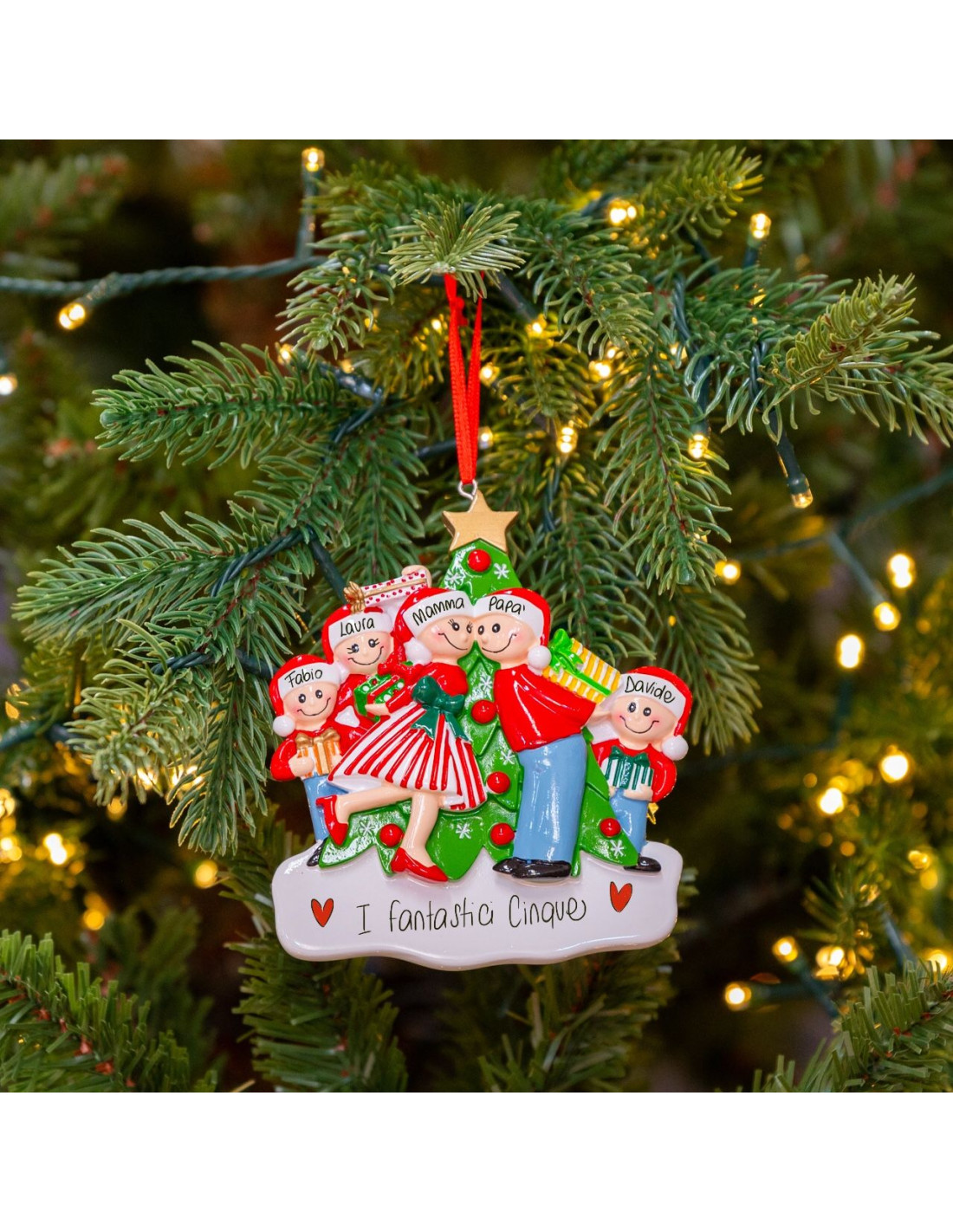 Lo scambio dei regali è uno dei momenti più belli del Natale. Doni unici, desideri che si avverano e attimi di felicità che rimangono impressi nella mente. La decorazione è pronta per essere personalizzata inserendo i nomi sui cappellini dei 5 personaggi e scrivendo una breve frase, un augurio o una data sul banner bianco. Le nostre bravissime decoratrici scriveranno a mano ogni tuo desiderio, senza nessun costo aggiuntivo. Ogni decorazione sarà consegnata nella splendida Gift Box.