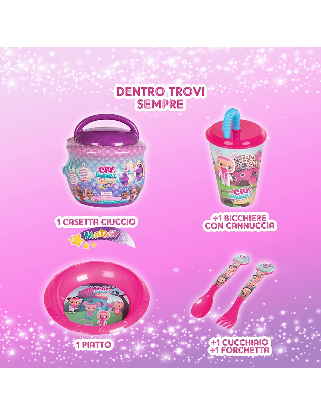 UOVO DI PASQUA SORPRESA: Scatola sorpresa piena di un sacco di giochi per i piú piccoli INCLUDE SEMPRE 1 BAMBOLA: Puoi trovare 1 Cry Babies Magic Tears Casetta Ciuccio o un'escluiva Cry Babies Tiny Cuddle, se sarai fortunato! 4 ACCESSORI: dentro trovi sempre 1 bicchiere con cannuccia, 1 piatto, 1 cucchiaio e 1 forchetta delle Cry Babies LA PASQUA PIÚ SPECIALE per bambini e bambine dai 3 anni in su APPRENDIMENTO GIOCANDO: I bambini sviluppano le loro capacitá motorie, linguistiche e sociali giocando con le Cry Babies DIVERTIMENTO E IMMAGINAZIONE: le Cry Babies stimolano il gioco immaginativo REGALO DI PASQUA per bambine e bambini dai 3 anni in su