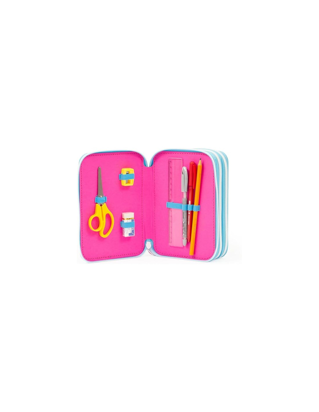 GO POP Astuccio Triplo, Completo di Set Cancelleria, Astuccio 3 Scomparti per Bambine e Ragazze, Prima Elementare, Per Scuola Elementare e Medie