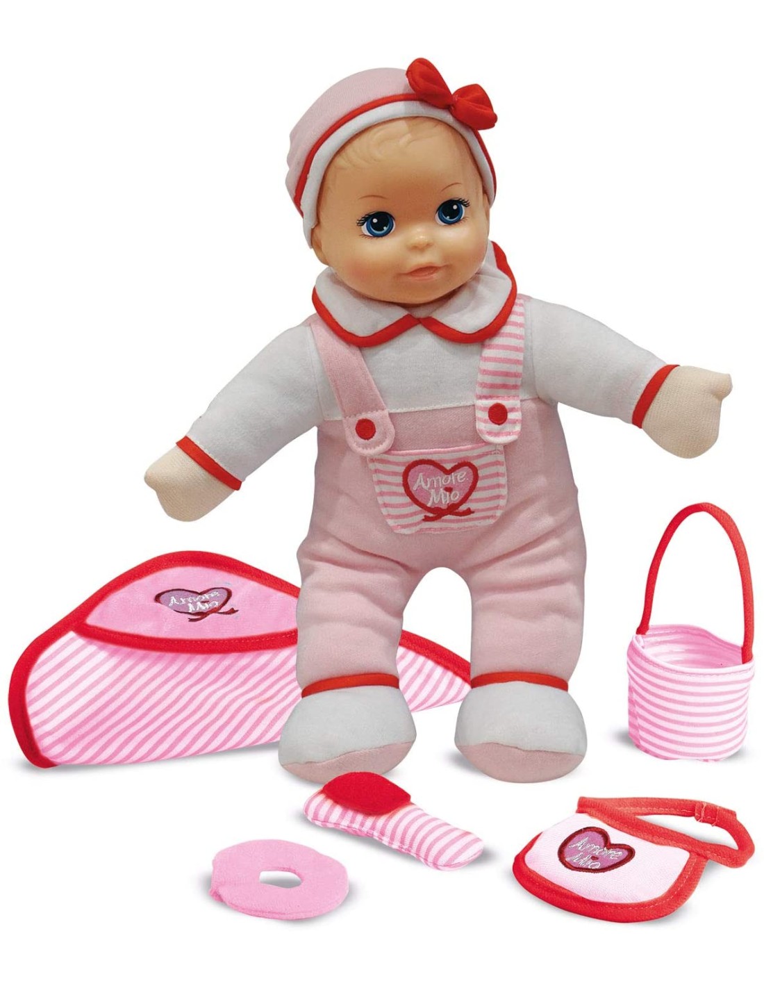 Primo Amore sono delle tenere e morbide bambole. Premendo il pancino, la bambola dirà alcune parole e farà dei versi. Tanti gli accessori inclusi nella confezione: una borsetta, un sonaglino, un bavaglino e una calda copertina. Disponibili due modelli venduti singolarmente...