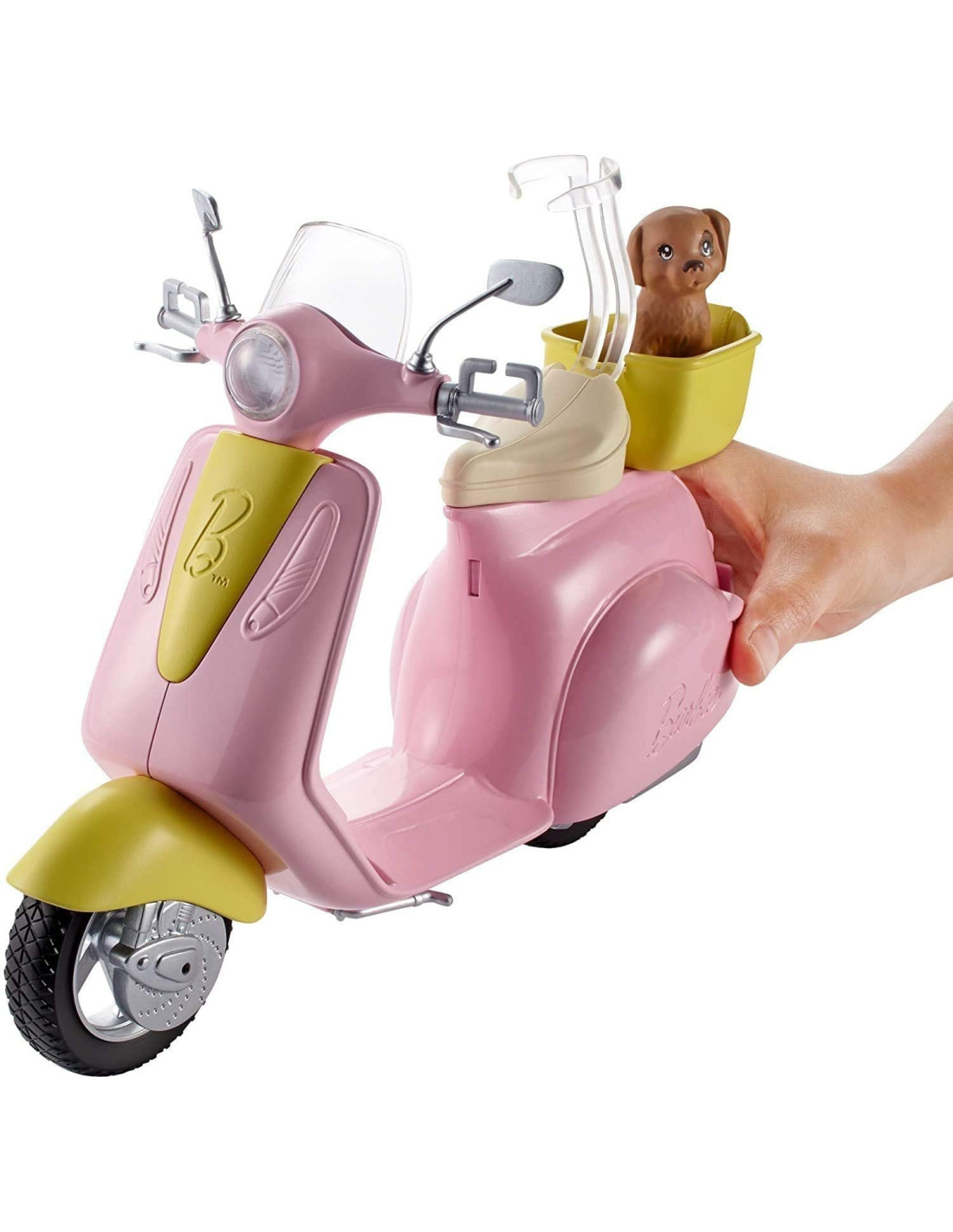 Sali in sella al divertimento con questo scooter di Barbie. Include un amico a quattro zampe che è sempre pronto per fare un giro. in rosa e giallo con dettagli argentati, questo scooter è trendy e pieno di stile. Metti Barbie (in vendita separatamente) seduta sulla sella che ha una clip che la sorregge. Solleva il cavalletto e sfreccia verso un mondo di immaginazione. Porta con te il cagnolino nel cestino giallo posteriore. E un bel casco coordinato ti permette di guidare in modo sicuro ma in grande stile. Sia che tu vada a fare un giretto o parta per un'avventura su due ruote, questo scooter è pronto a tutto. Include scooter di Barbie con cestino, cagnolino e casco - bambola non inclusa. Colori e decorazioni possono variare. Non adatto a bambini con età inferiore a 3 anni Contenuto della confezione Giocattolo come descritto