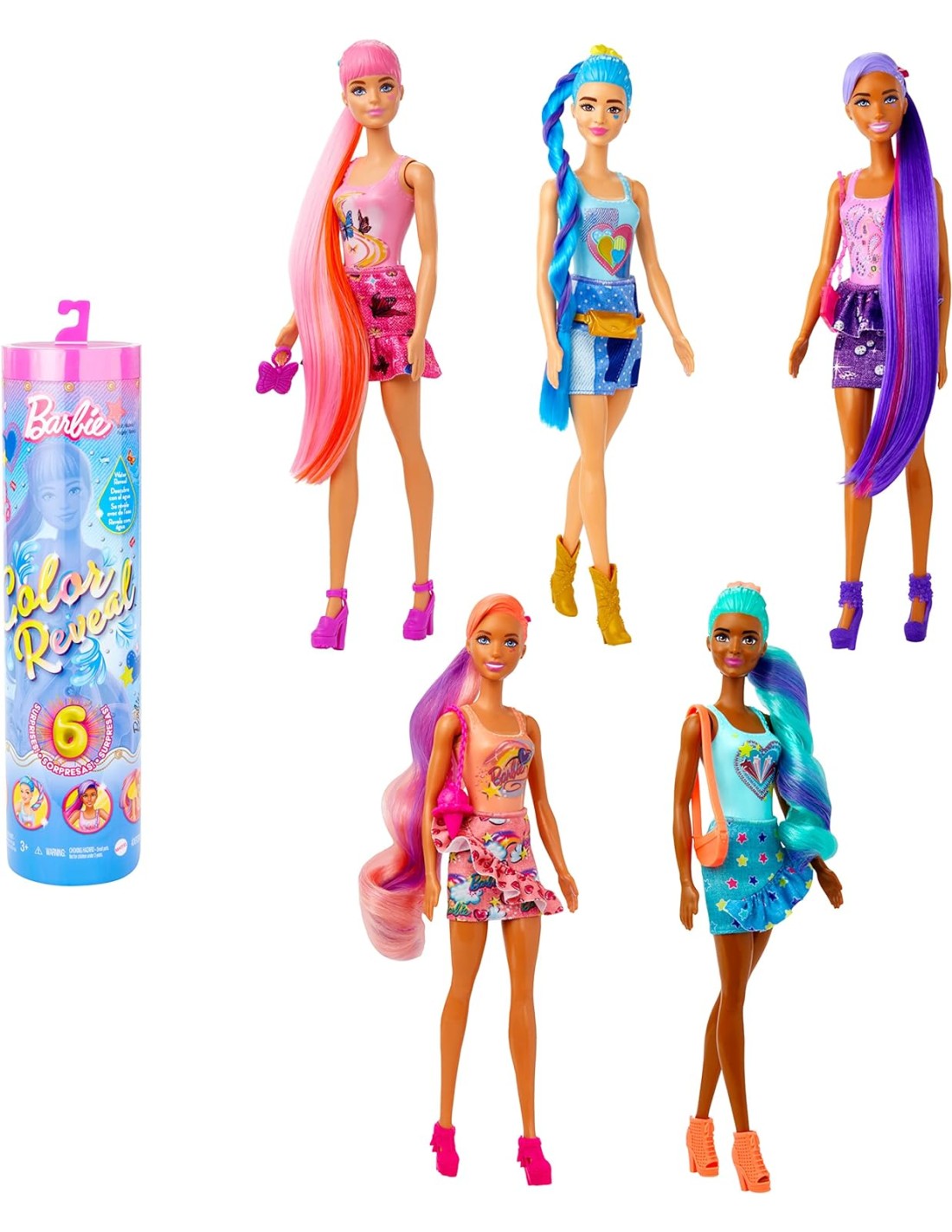 Con 6 sorprese in ogni confezione di bambole Barbie Color Reveal, il divertimento è assicurato: bambini e bambine adoreranno scoprire la serie Jeans con l'innovativa e originale funzione Color Reveal!
