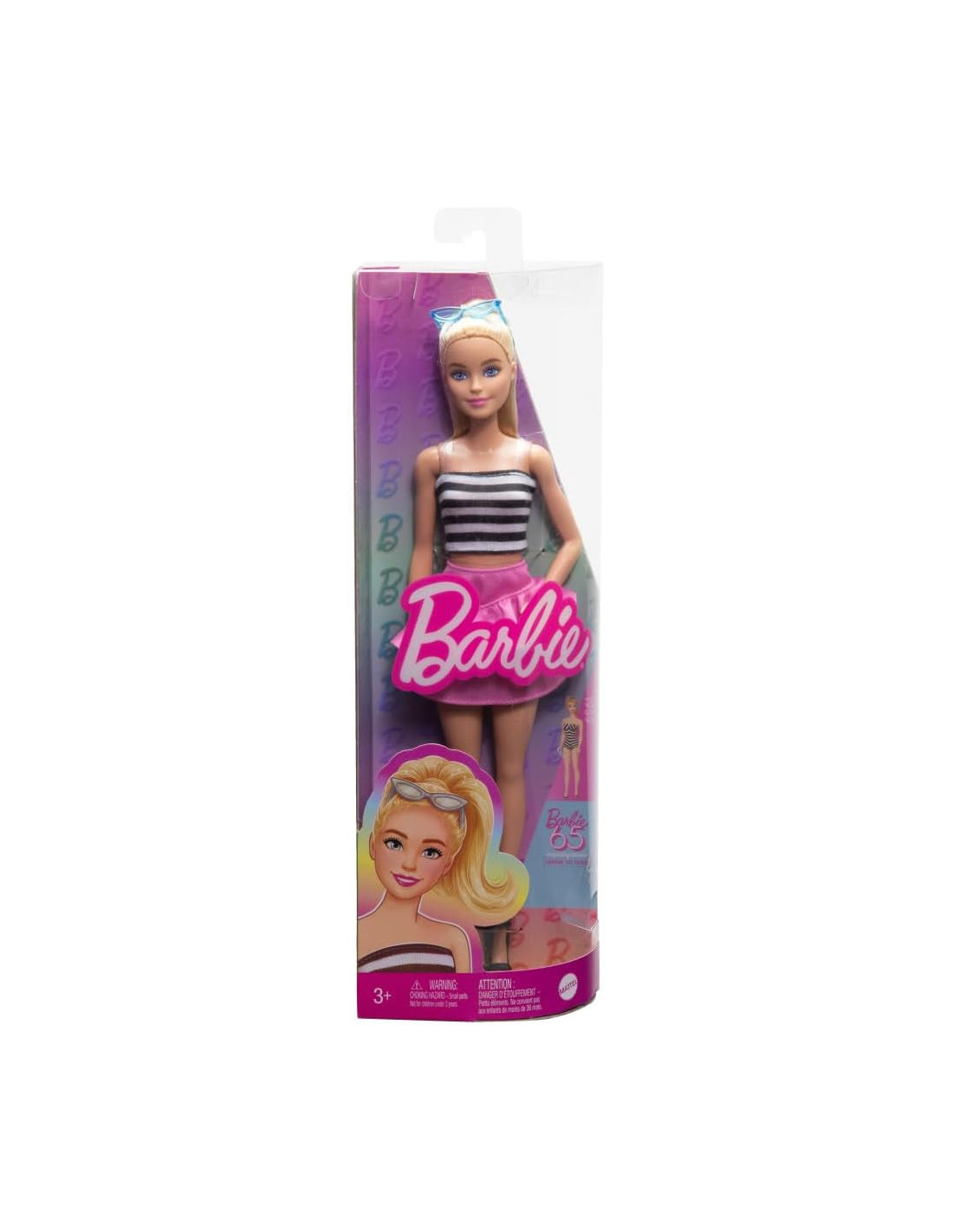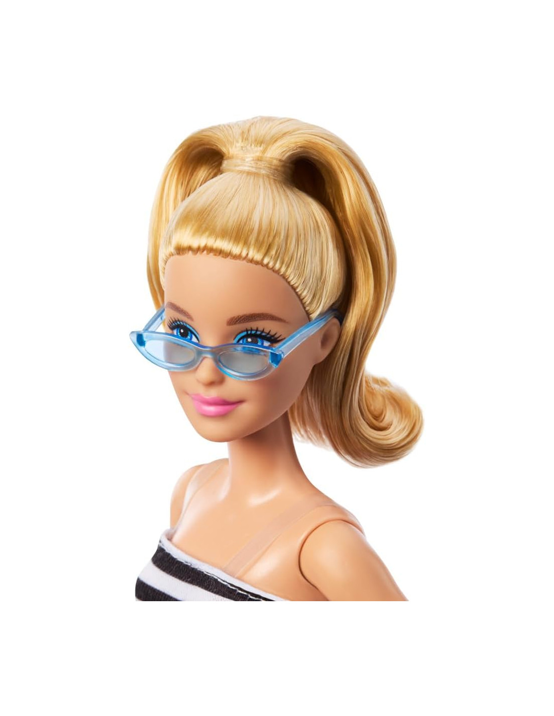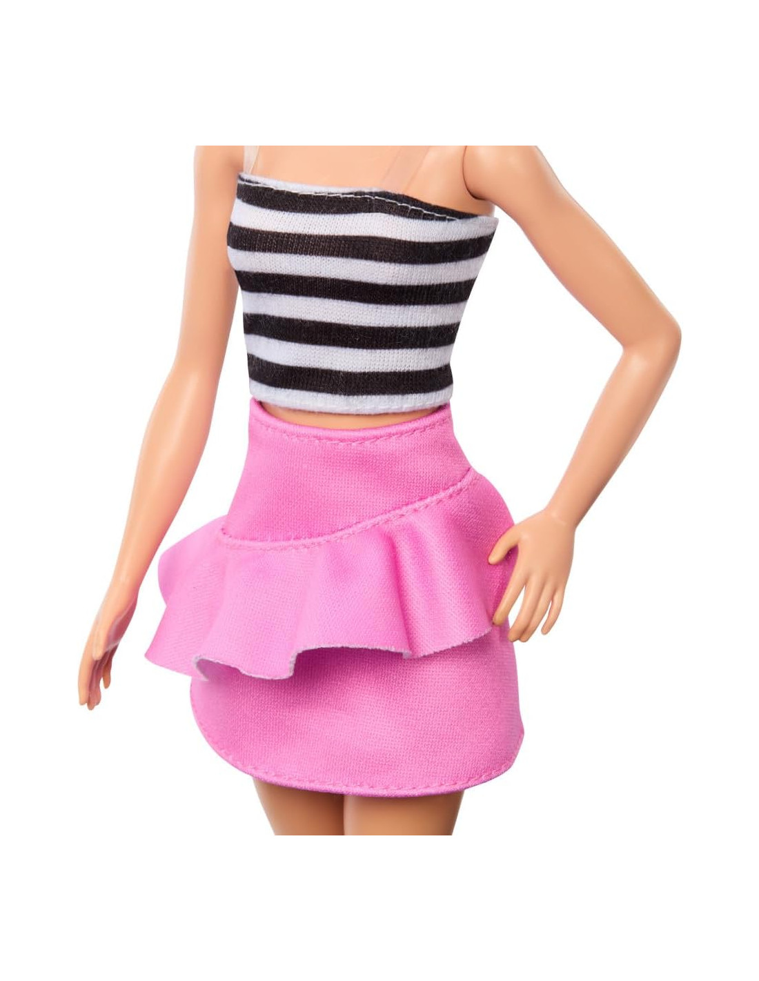 Barbie celebra 65 anni di stile inconfondibile donando un tocco moderno ai look iconici e tanta unicità! Ispirata all'iconico primo costume da bagno del 1959, Barbie Fashionistas indossa un top a righe bianche e nere e una gonna con volant rosa. I tacchi neri con cinturino e gli occhiali da sole blu sono classici e alla moda allo stesso tempo! I capelli biondi sono acconciati in una coda di cavallo alta, perfetta per ogni occasione! Con infinite possibilità di stile e narrazione, le bambole Barbie sono un regalo fantastico per fan, collezionisti e bambini e bambine dai 3 anni in su!