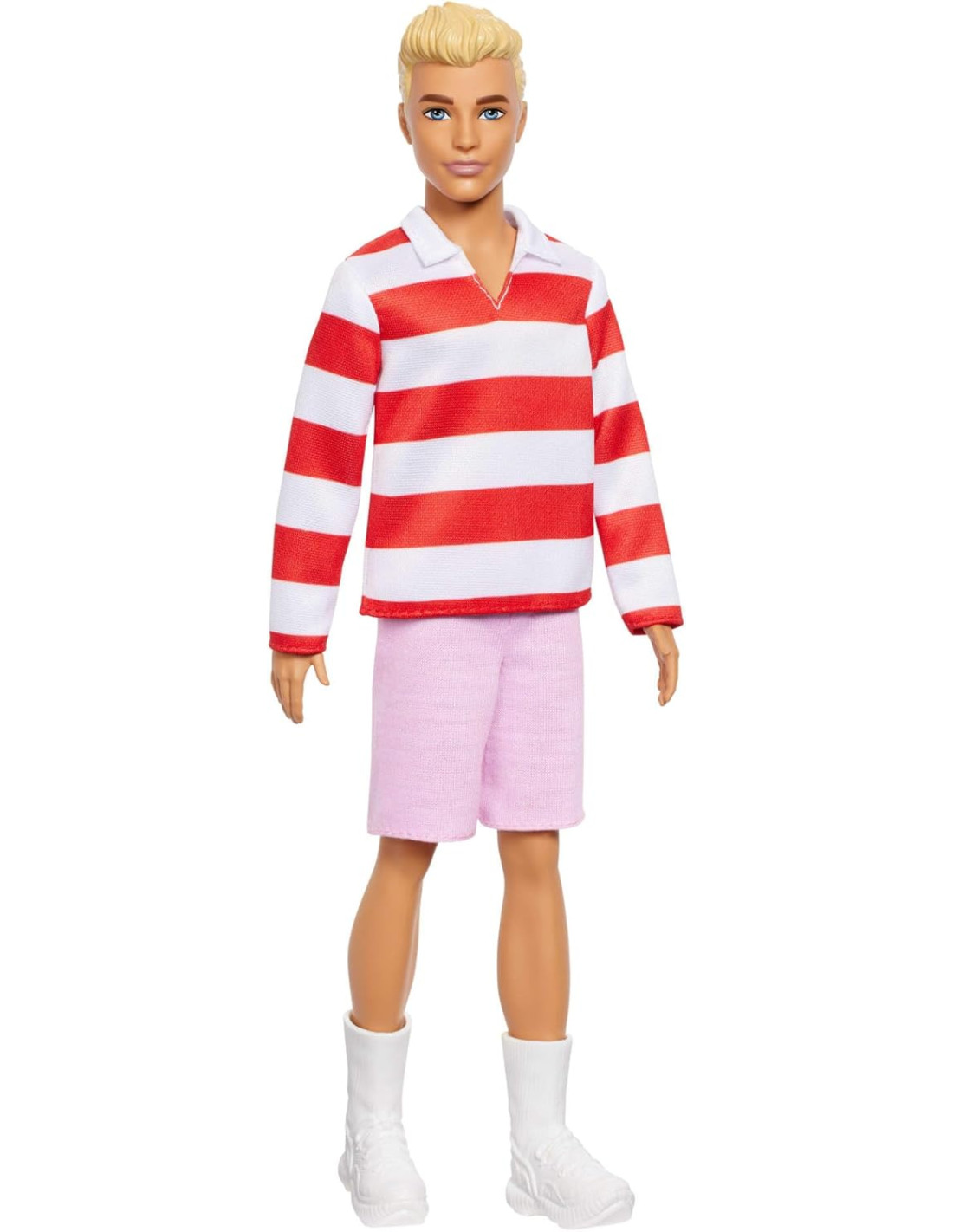 Barbie - Ken Fashionistas n. 241, bambola con capelli biondi, polo a righe bianche e rosse, shorts rosa, calze bianche e scarpe da ginnastica