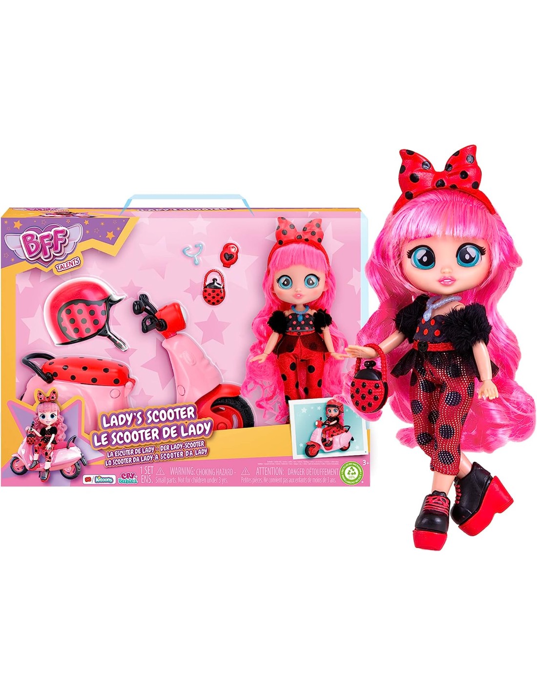 Scopri L'esclusiva BFF Lady con il suo fantastico Scooter! Lady indossa un bellissimo outfit coccinella super fashion ed è una modella.