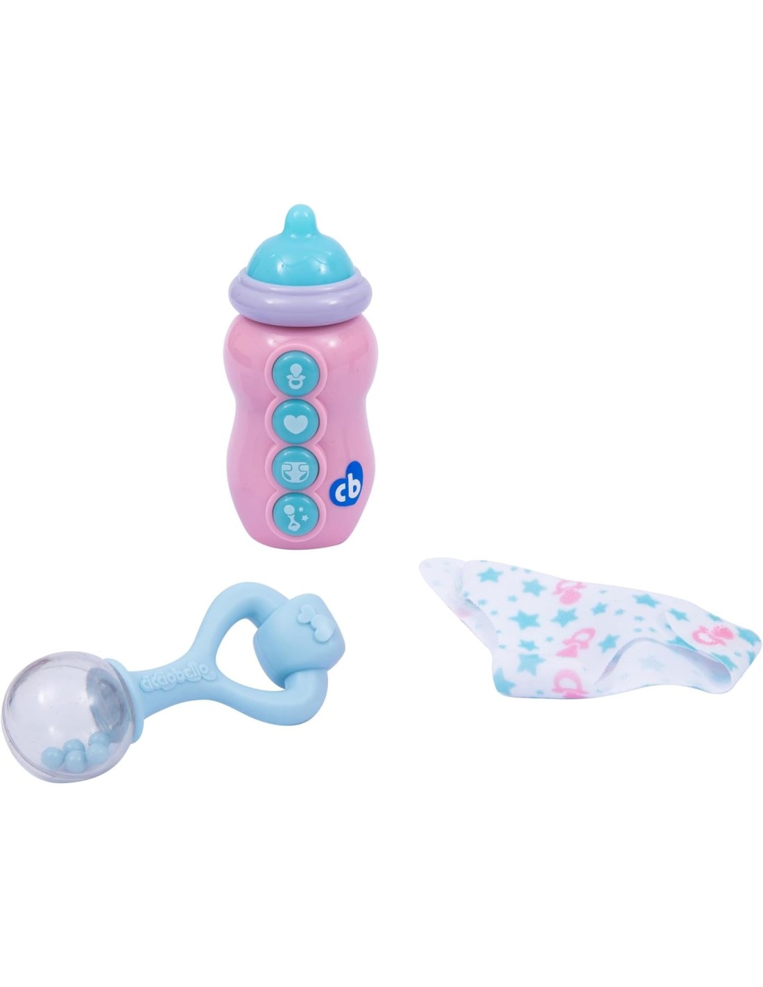 Accessori inclusi: baby monitor, ciuccio, sonaglio e pannolino
