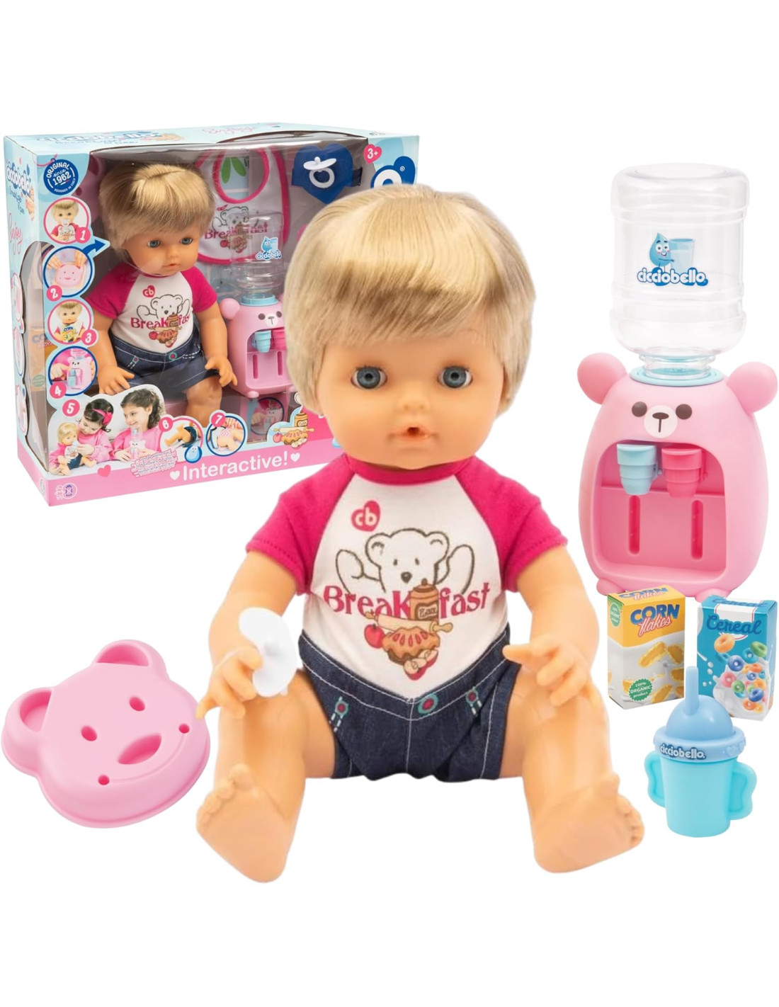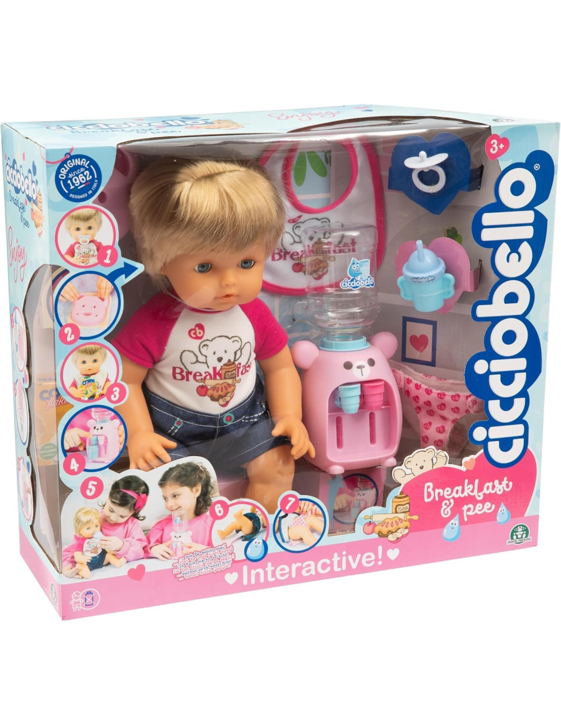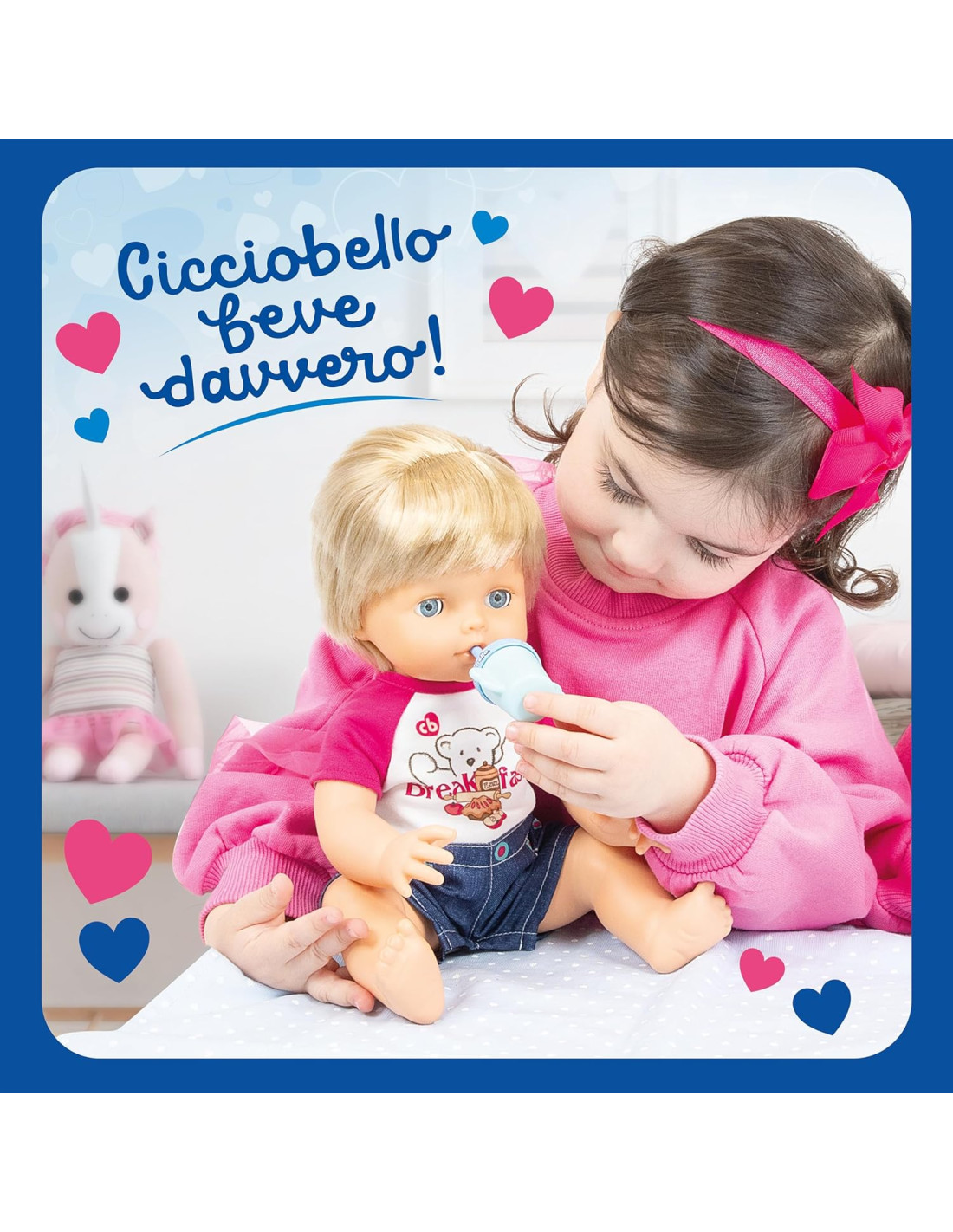 Le scatolette sono vuote Beve dal suo bicchierino e poi fa la pipì: Riempi il dispenser e versa l'acqua nel bicchiere. Cicciobello beve davvero grazie al coperchio con cannuccia e, dopo pochi istanti, bagna il pannolino. Una funzione semplice da usare che avvicina i bambini ai piccoli gesti della cura quotidiana.