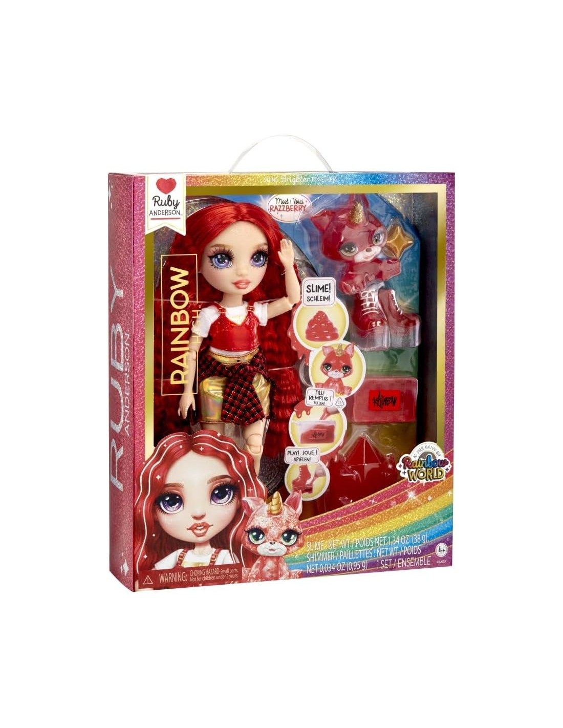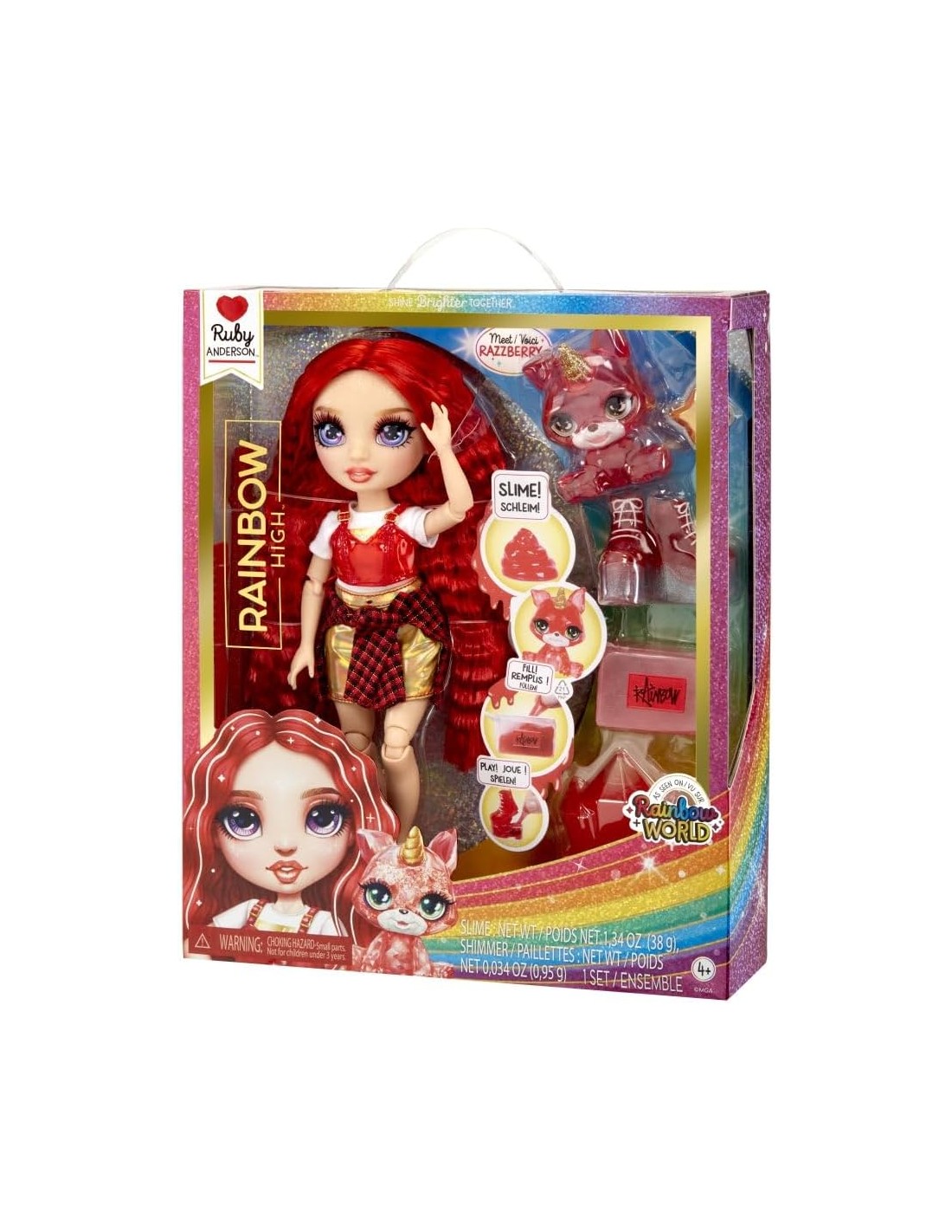 Rainbow High Fashion Doll with Slime Kit & Pet - Ruby (Rosso) - Bambola scintillante da 28 cm con Slime scintillante fai da te, Animale Magico e Accessori Moda