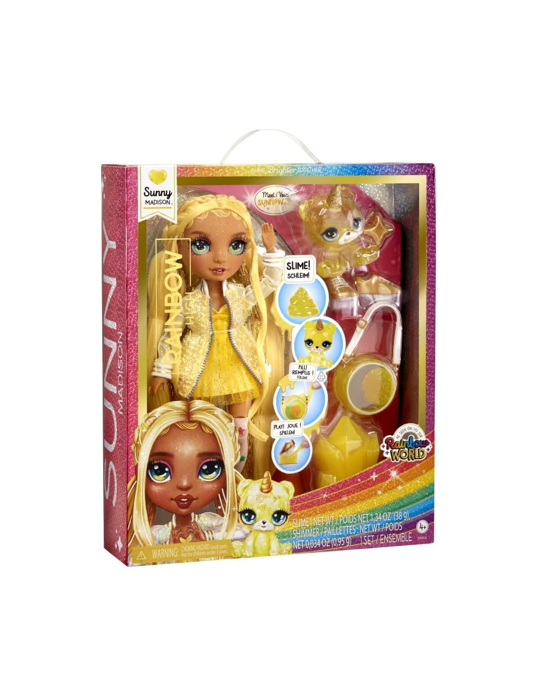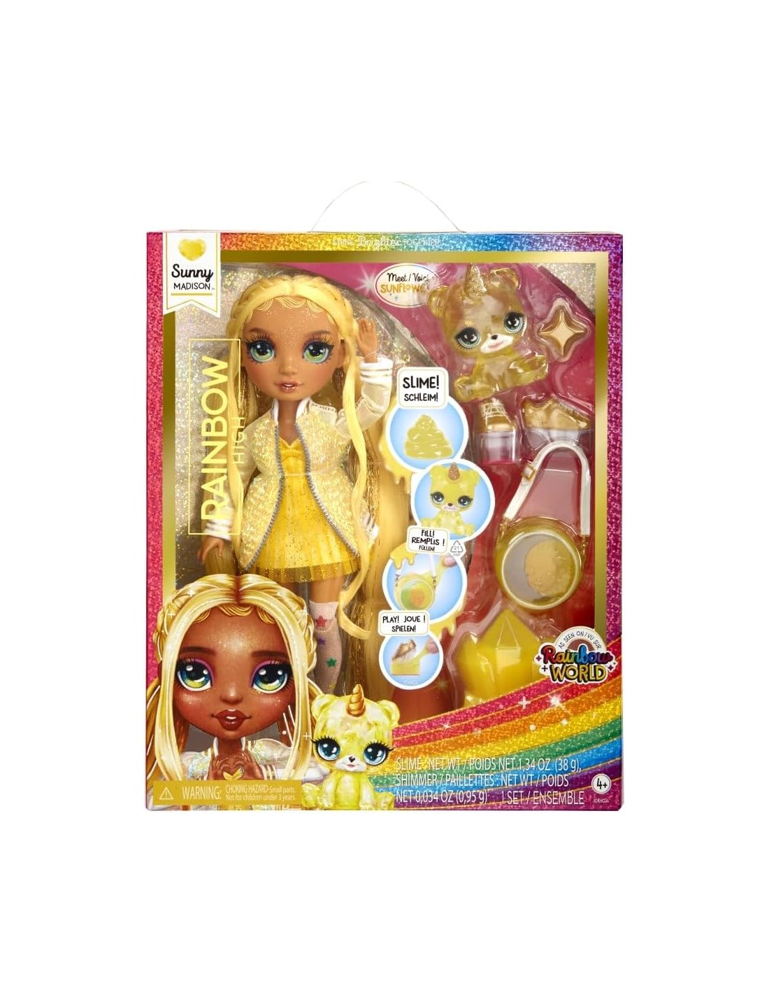 Rainbow High Fashion Doll with Slime Kit & Pet - Sunny (giallo) - Bambola scintillante da 28 cm con Slime scintillante fai da te, Animale Magico e Accessori Moda