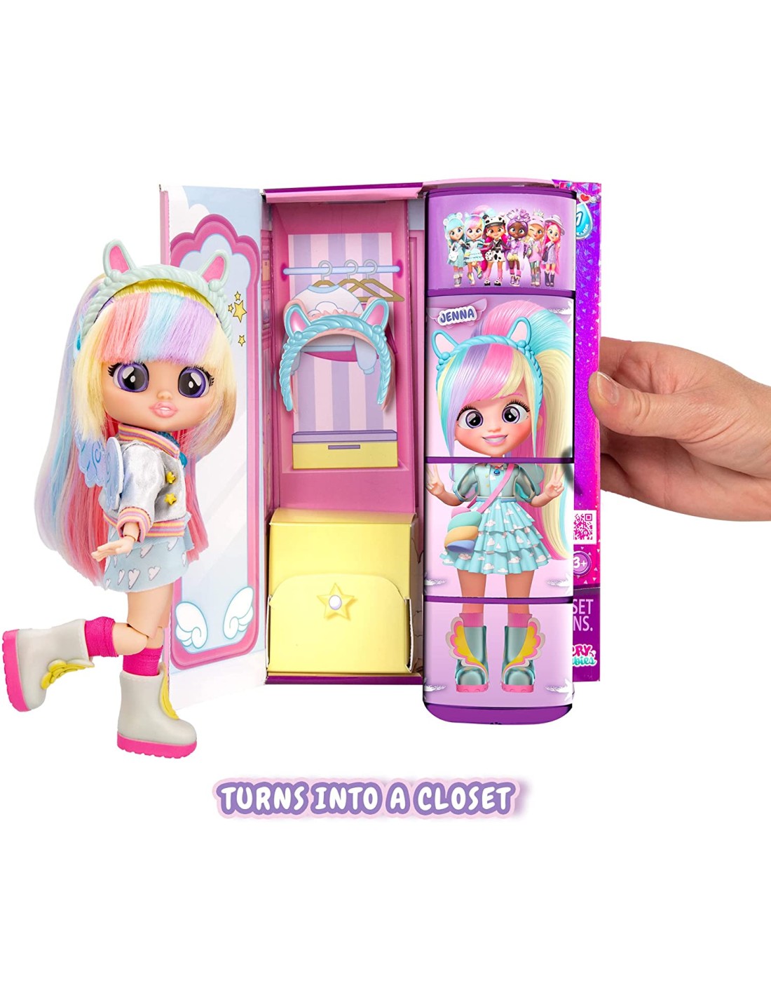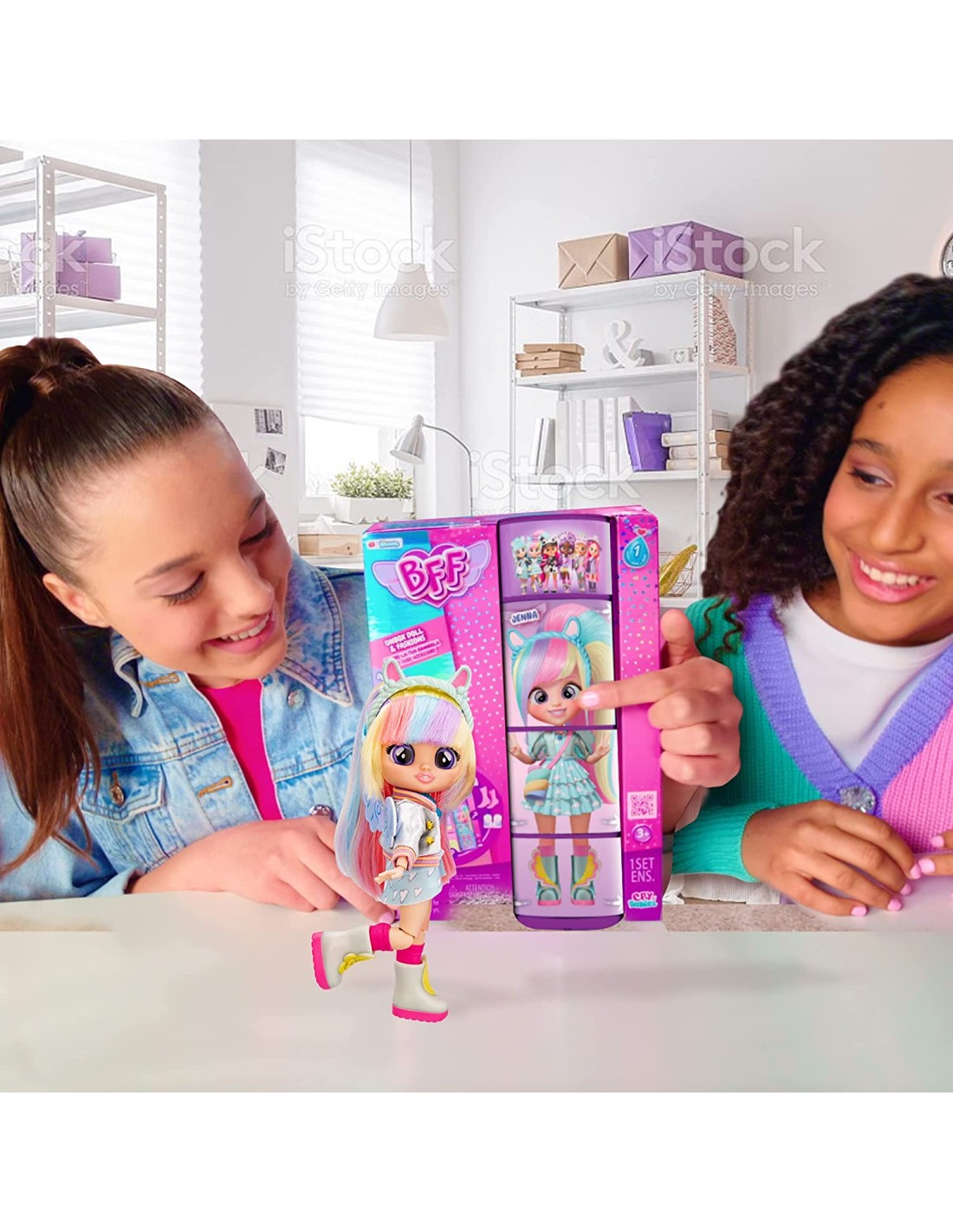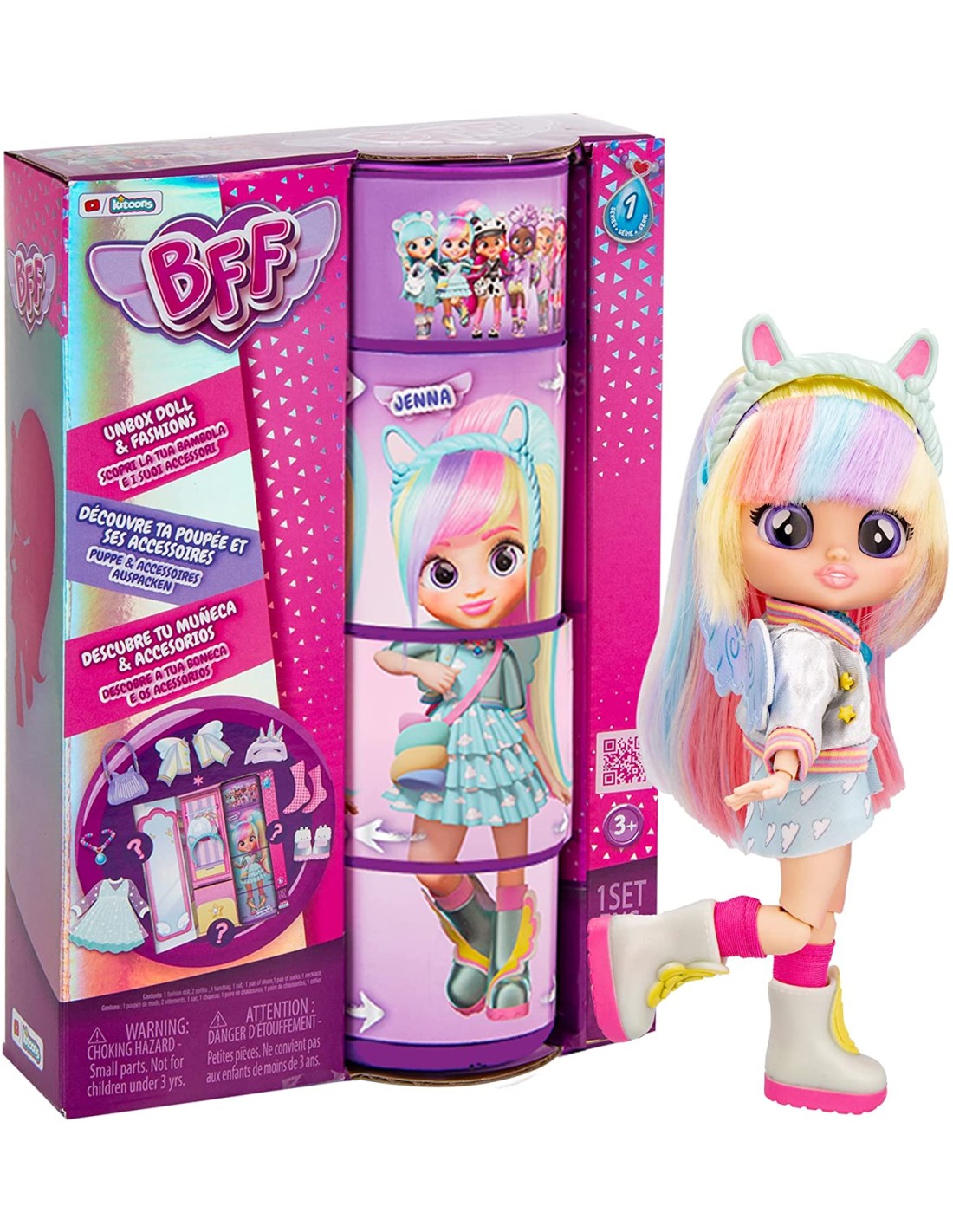 BFF BY CRY BABIES Jenna, Bambola alla moda da Collezione con Capelli Lunghi, Vestitini in Tessuto e 9 Accessori, da 5 Anni