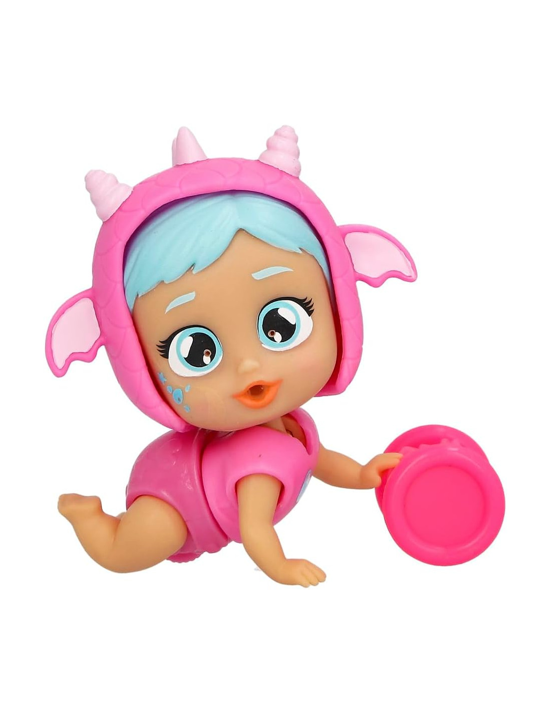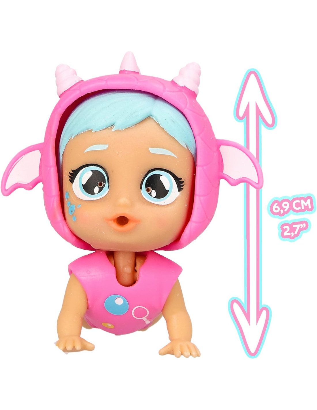 Bambola gattonante: Bruny misura 7 cm e va con i suoi vestiti per l'asilo; i bambini possono vestirla con i loro vestiti da drago personalizzati e divertirsi con tutti gli accessori inclusi; gattonare come un vero bambino e piangere lacrime sulla guancia