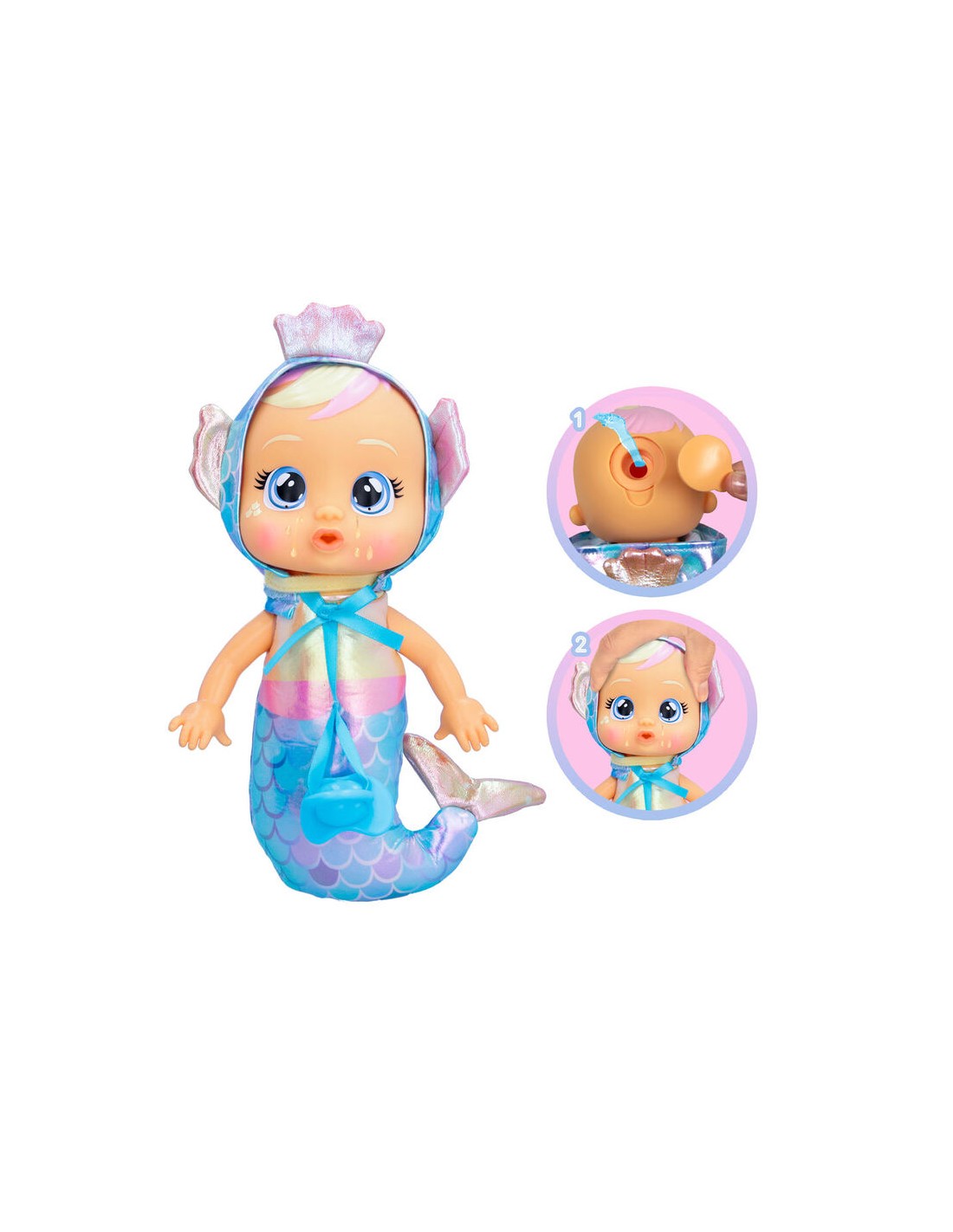 Giselle risplende in un completo a sirena azzurro, rosa e blu. I più piccoli possono giocare con la versione più morbida dei loro Cry Babies preferiti.