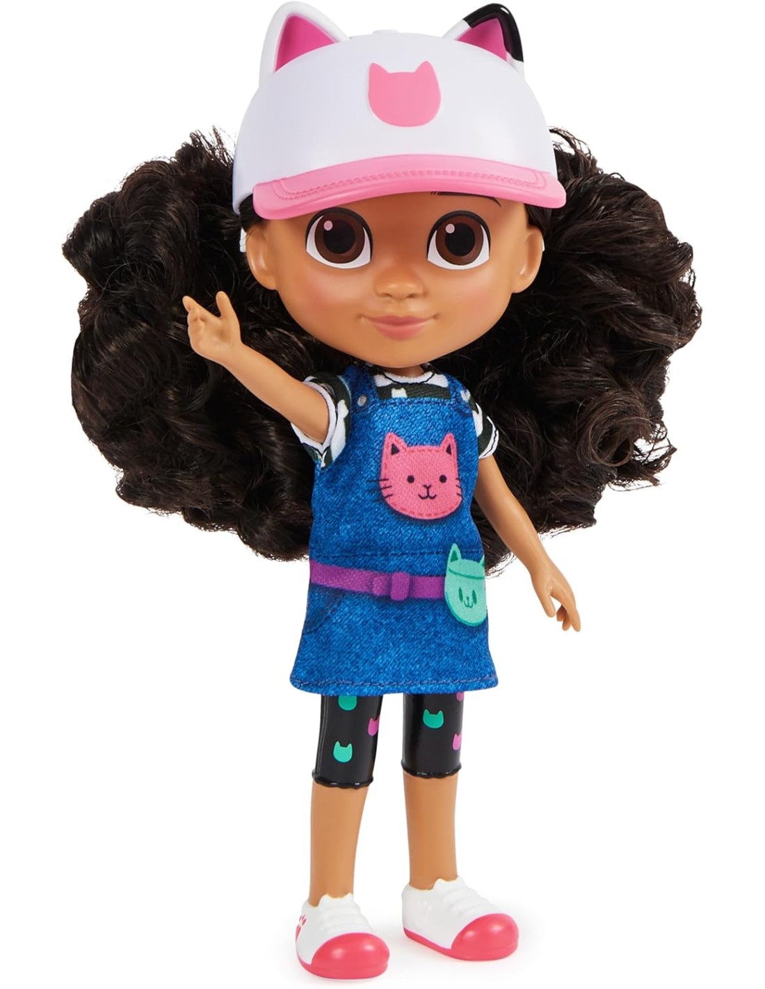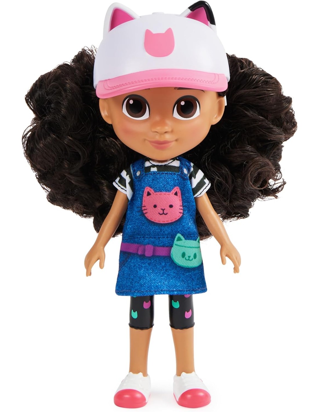 BAMBOLA DA 20,3 CM DI GABBY'S DOLLHOUSE: con il suo outfit Gabby è pronta a mille avventure. È completa di dettagli realistici ispirati al cartone, come l'abito in denim, le orecchie da gatto e il cappellino da baseball, che danno vita alla bambola BAMBOLA CON CAPELLI MORBIDI: divertiti a spazzolare, colorare e acconciare i suoi morbidissimi capelli ricci. Gabby è uguale al personaggio della popolare serie NETFLIX, La casa delle bambole di Gabby CAPPELLINO E ORECCHIE DA GATTO RIMOVIBILI: Gabby include le immancabili orecchie da gatto e il cappellino da baseball rimovibili. Pizzica a sinistra e a destra per farglieli indossare e iniziare le tue avventure COSTRUISCI UNA CASA DELLE BAMBOLE: con stanze a tema, mobili della casa delle bambole, personaggi giocattolo e set di gioco, i bambini potranno creare un universo che li aiuterà a sviluppare l'immaginazione attraverso il gioco di finzione INCLUDE: 1 bambola Gabby, 1 cerchietto con orecchie da gatto rimovibile, 1 cappellino da baseball rimovibile COLLEZIONALI TUTTI: i giocattoli di Gabby's Dollhouse sono ottimi regali per bambini in età prescolare e per chi adora bambole, accessori, giocattoli a sorpresa, animali di peluche, puzzle e giochi da tavolo