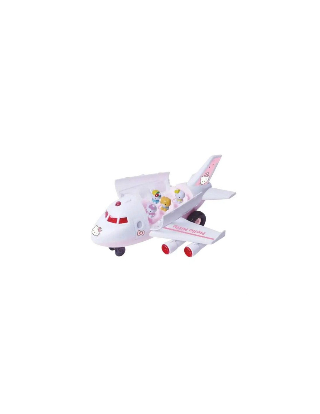 Grande aereo playset Hello Kitty con luci e suoni realistici, movimento a frizione, il prodotto si apre e la scaletta si abbassa, i motori si illuminano e si sente il suono di un vero jet, quattro personaggi inclusi.