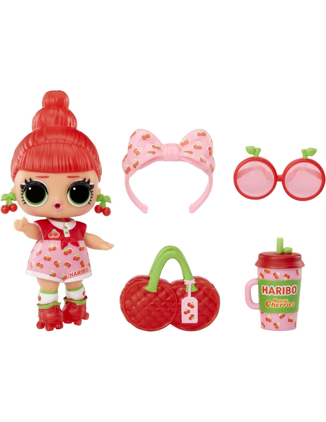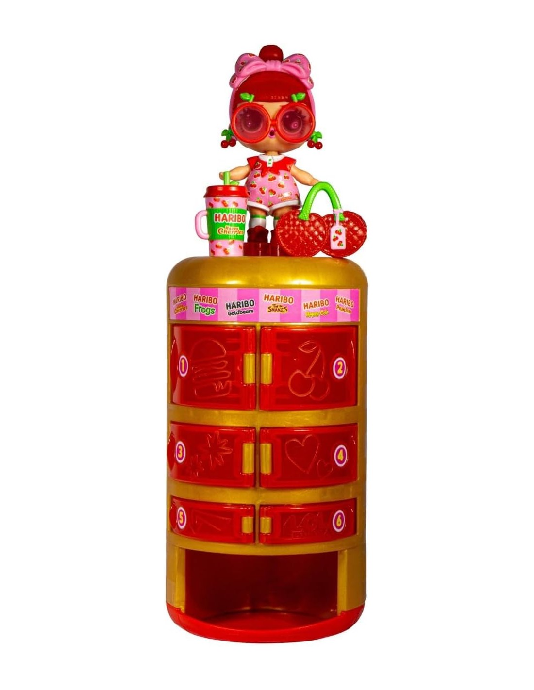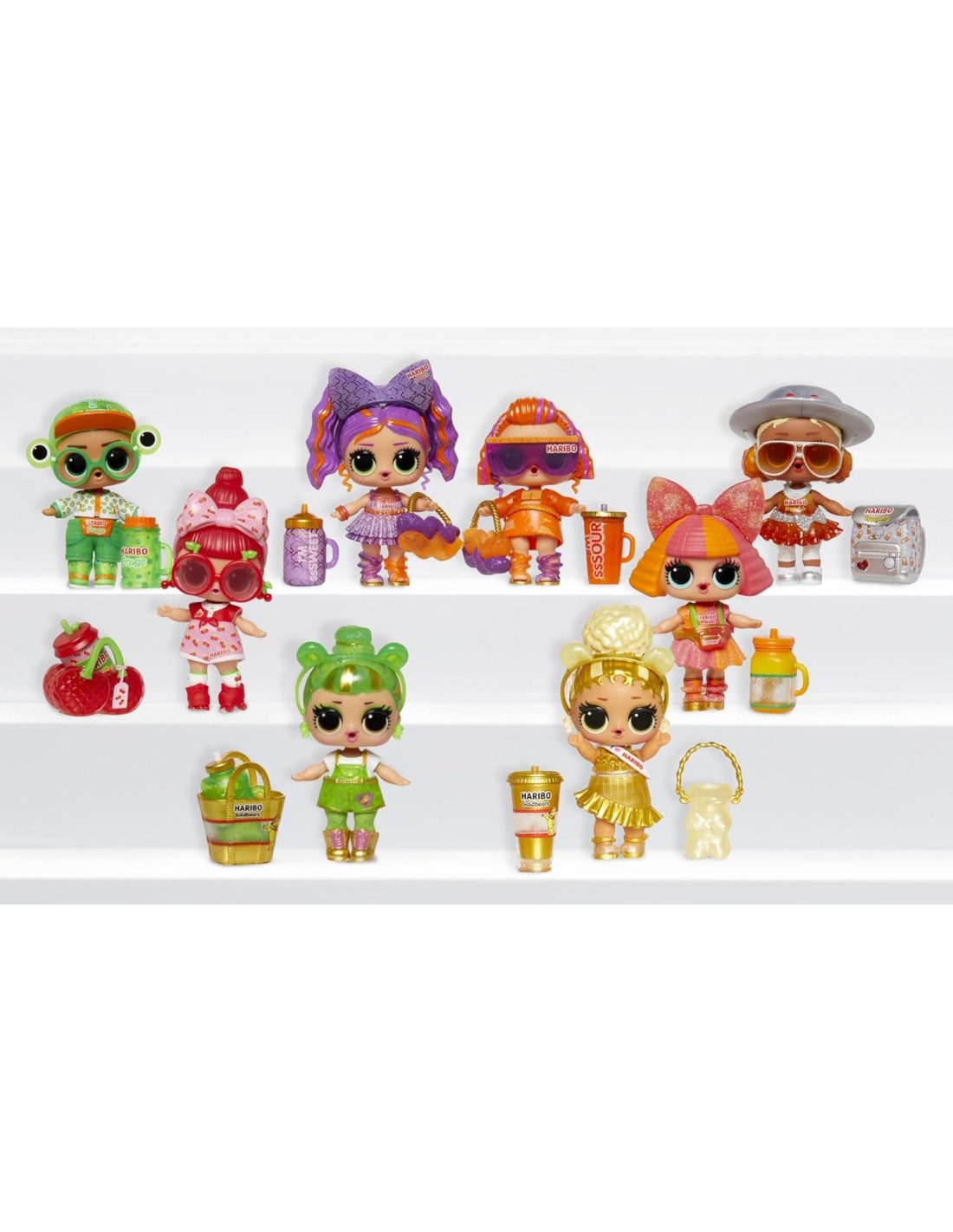 L.O.L surprise ha collaborato con note aziende dolciarie per creare la Serie 3 delle bambole LOL Surprise Loves Mini Sweets; ogni bambola ha uno stile che puoi abbinare ai dolcetti Trova Junior Mints, Tootsie, Tootsie Pop, Hershey's Bubble Yum, Dots, Haribo Goldbears, Haribo Frogs, Haribo Twin Snakes e Haribo Happy Cherries per completare la tua raccolta di caramelle 7 sorprese: (1) bambola LOL Surprise Loves Mini Sweets; (2) outfit; (3) scarpe; (4) bottiglia; (5) Accessorio; (6) Accessorio; (7) Borsetta