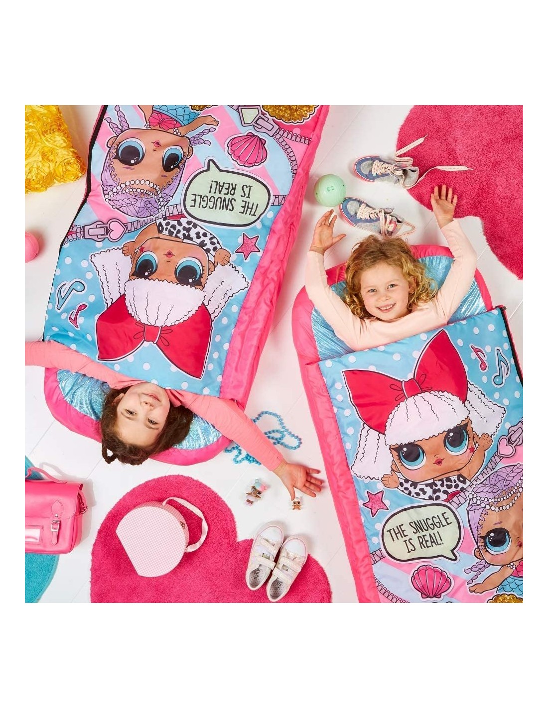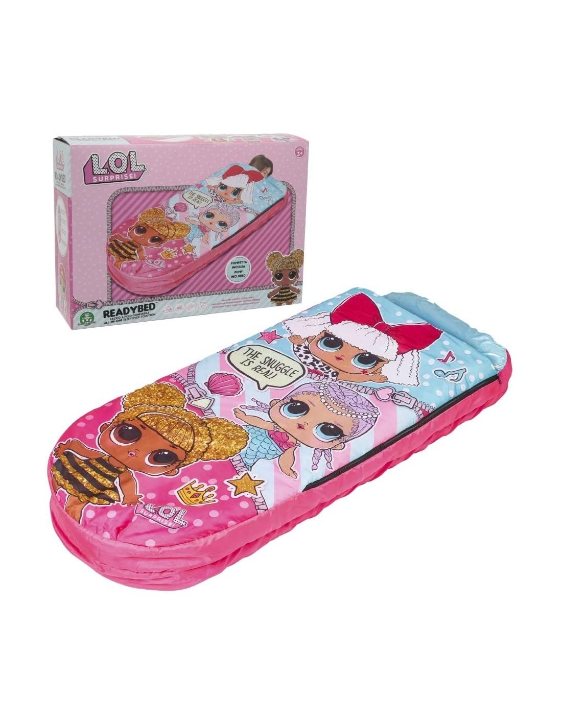 Lol Ready Bed gonfiabile per tutte le soluzioni, con cuscino gonfiabile. Ottimo per dormire fuori casa con gli amici. Terminato l'utilizzo è ripiegabile e si trasforma in una pratica borsa da viaggio. Include la pompa per gonfiare il materassino. Non adatto a bambini di età inferiore a 3 anni Contenuto della confezione sacco a pelo -LOL Ready bed gonfiabile per tutte le soluzioni, con cuscino gonfiabile -Sacco a pelo con materassino gonfiabile -Il materassino gonfiabile è allinterno ricoperto da un confortevole tessuto -Terminato l'utilizzo è ripiegabile e si trasforma in una pratica borsa da viaggio -Ottimo per dormire fuori casa con gli amici LOL Ready bed gonfiabile per tutte le soluzioni, con cuscino gonfiabile Sacco a pelo con materassino gonfiabile Il materassino gonfiabile è allinterno ricoperto da un confortevole tessuto Terminato l'utilizzo è ripiegabile e si trasforma in una pratica borsa da viaggio Ottimo per dormire fuori casa con gli amici