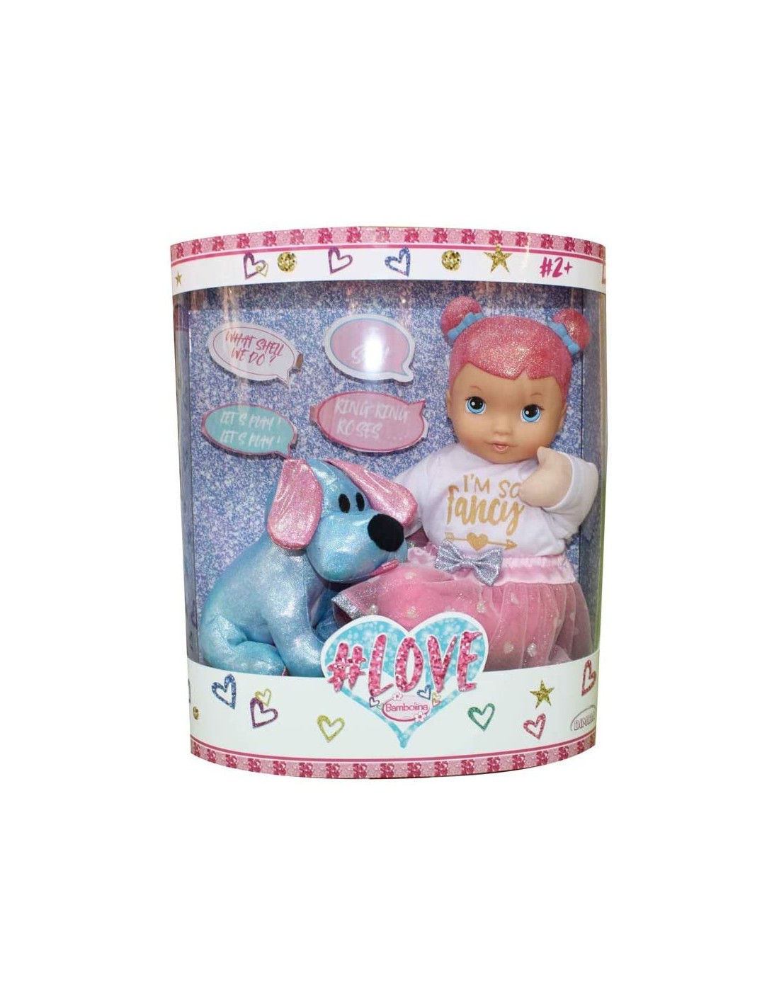 La bambola bambolina love con cane in versione maschietto e femminuccia. Le bambole interagiscono con il cucciolo con conversazione fino a 3 minuti semplicmente premendo il pulsante sulla mano della bambola e la zampa del cagnolino. Nessun avvertimento -Bambolina #love con cagnolino interattivo è alta 34 cm -Disponibile in versione maschietto e femminuccia -Premi la mano della bambola e la zampetta del cagnolino per attivare la conversazione -Le bambole hanno una conversazione di durata fino a 3 minuti -Da 2 anni in su Bambolina #love con cagnolino interattivo è alta 34 cm Disponibile in versione maschietto e femminuccia Premi la mano della bambola e la zampetta del cagnolino per attivare la conversazione Le bambole hanno una conversazione di durata fino a 3 minuti Da 2 anni in su