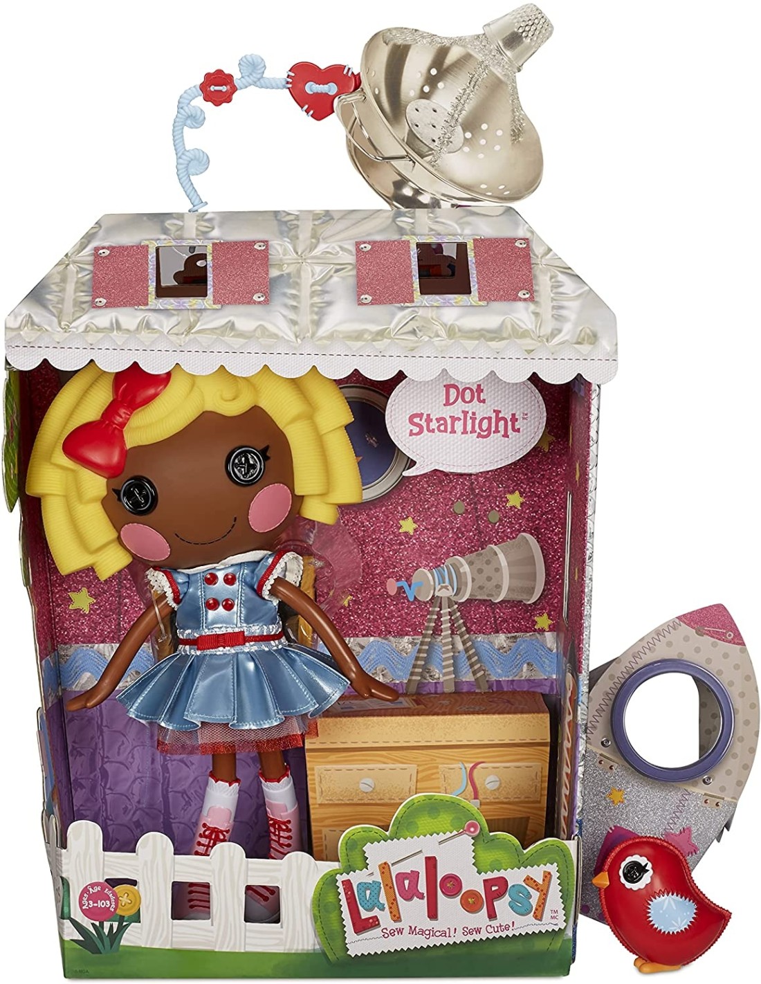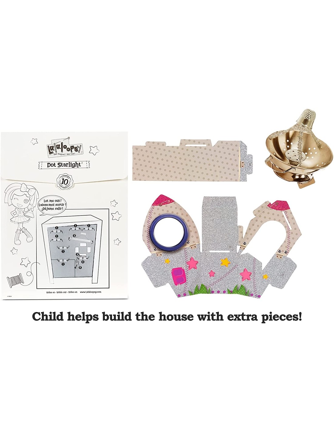 GRANDE E COLORATA - Ogni bambola Lalaloopsy è alta 33 cm ed è realizzata con cura. La testa, le braccia e le gambe sono snodabili. PERSONALITÀ UNICA - Ogni bambola ha una personalità unica e una data cucita. Dot Starlight è stata realizzata con la tuta spaziale di un vero astronauta. È una sognatrice che ama la scienza e ha sempre la testa tra le nuvole GIOCA CON I VESTITI - I vestiti e le scarpe di alta qualità della bambola possono essere rimossi per giocare a essere stilista ANIMALE INCLUSO - Ogni bambola viene fornita con il suo adorabile animale domestico. Dot Starlight ha un uccellino CONFEZIONE RIUTILIZZABILE - Ogni NUOVA confezione è una casetta riutilizzabile che esprime in modo unico la personalità di ogni bambola. Il bambino può costruire la casa con i pezzi extra! Dopo, collega le case per creare la Lalaloopsy Land!