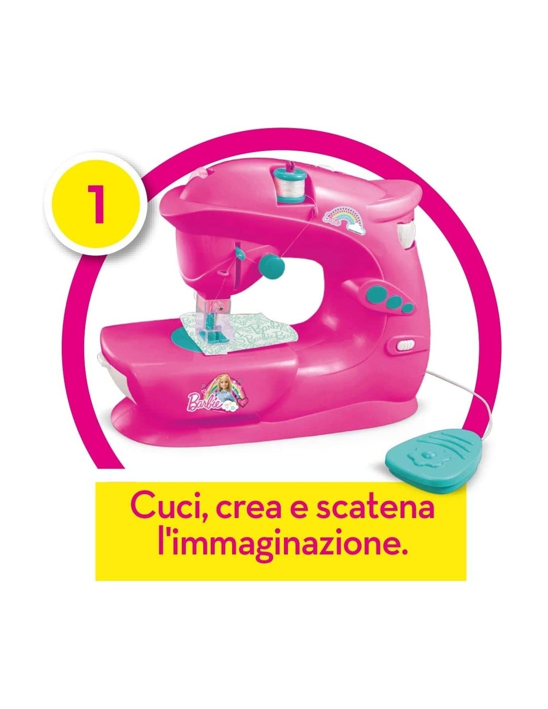Contiene: 1 macchina da cucire, 1 manichino, 1 scatola da cucito che comprende: 4 rocchetti di filo, 1 puntaspilli a cuore, 1 metro da sarta, 1 paio di forbici, 10 bottoni, 1 stoffa multicolore, 1 infila ago.