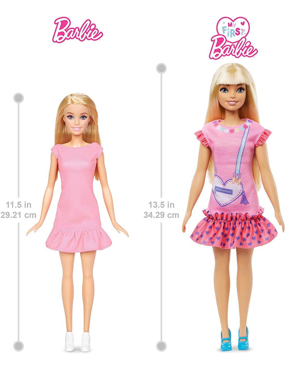 Ti diamo il benvenuto nel dolce mondo di Barbie My First, dove nascono amicizie e la fantasia prende il volo! I bambini in età prescolare imparano, giocano e crescono con le bambole e i playset Barbie My First. Questa bambola Barbie 'Malibu' Roberts alta 34,3 cm è ispirata all'omonimo personaggio della serie YouTube Barbie My First. Il busto e gli arti snodati la rendono facile da maneggiare, trasportare e vestire. Il suo abito rosa sfoggia l'immagine di una borsetta a forma di cuore, volant sulle spalle e orlo a balza. Indossa un adorabile fiocchetto per capelli e scarpe coordinate per giocare con stile! Le pratiche chiusure rendono più facile vestire la bambola ai più piccoli, per inventare storie di moda semplici e divertenti. La bambola Barbie 'Malibu' ha lunghi capelli biondi. Bambini e bambine possono usare la spazzola di grandi dimensioni inclusa per pettinare e acconciare i suoi capelli, per sviluppare la manualità e imparare come prendersi cura di sè! Include un gattino di peluche stampato con cui inventare nuove avventure e far emergere il lato più affettuoso di bambini e bambine. Include anche un braccialetto che si allaccia alle mani della bambola per consentirle di portare con sé il suo morbido e soffice gattino! Perfetta per i bambini in età prescolare, la linea Barbie My First incoraggia i più piccoli a creare nuove storie di moda e amicizia! Bambini e bambine possono collezionare tutte le bambole della linea per creare dolci momenti di amicizia.