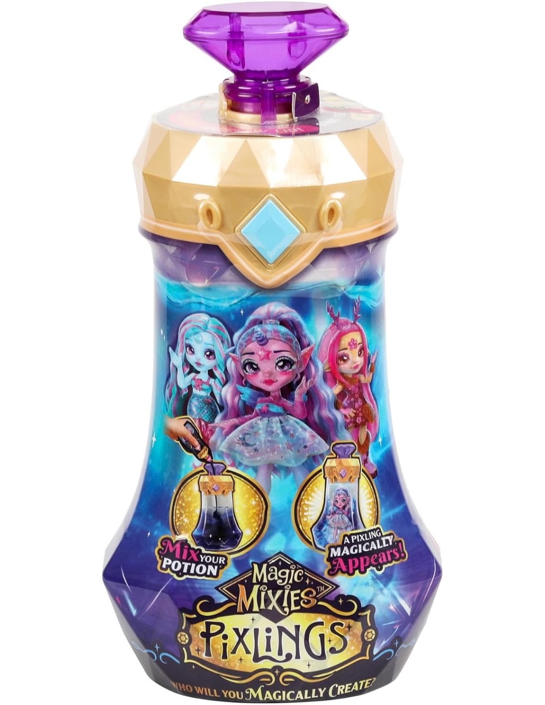Bastano semplici mosse per per far apparire la fantastica Mixies Doll!. Prepara la pozione magica aggiungendo tutti gli ingredienti e versando l'acqua all'interno del flacone Pronuncia le parole magiche e...vedrai la bambola apparire per magia! Scopri la doll sirena, cervo e unicorno! Lasciati incantare dalla magia!